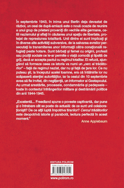 „Excelentă... Freedland spune o poveste captivantă, dar pune și o întrebare cât se poate de actuală: de ce sunt unii colaboraționiști? De ce alții luptă împotriva tiranilor? Cercul trădătorilor este deopotrivă istorie și parabolă, lectura perfectă în acest moment.” (Anne Applebaum)