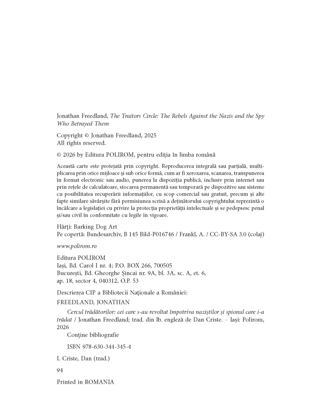 Jonathan FREEDLAND (n. 1967) este un jurnalist britanic de origine evreiască, prezentator al serialului de istorie contemporană „The Long View” la BBC Radio 4 și comentator politic la The Guardian. A absolvit studii de filosofie, politică și economie la Wadham College, Oxford University, iar în 1990 și-a început cariera de jurnalist. În 1992 a primit bursa Laurence Stern, constând într-un stagiu de pregătire în redacția cotidianului Washington Post. De-a lungul carierei a mai semnat în The New York Times, Newsweek, The New Republic, Daily Mirror, Evening Standard și The Jewish Chronicle. În anul 2002 a obținut distincția la categoria autori de texte de opinie în cadrul Premiilor „What the Papers Say”, iar în 2008 a primit David Watt Prize for Journalism. În 2014 i s-a acordat un Premiu Special „Orwell”, iar doi ani mai târziu a câștigat premiul „Commentariat of the Year” la Comment Awards. Până în prezent a publicat nouă romane, dintre care opt sub pseudonimul Sam Bourne, și patru cărți de nonficțiune. La Editura Polirom au fost traduse volumul Evadatul de la Auschwitz. Povestea lui Rudolf Vrba (2023) și două romane semnate Sam Bourne: Omorâți-i pe cei Drepți! (2006) și Ultimul testament (2008).