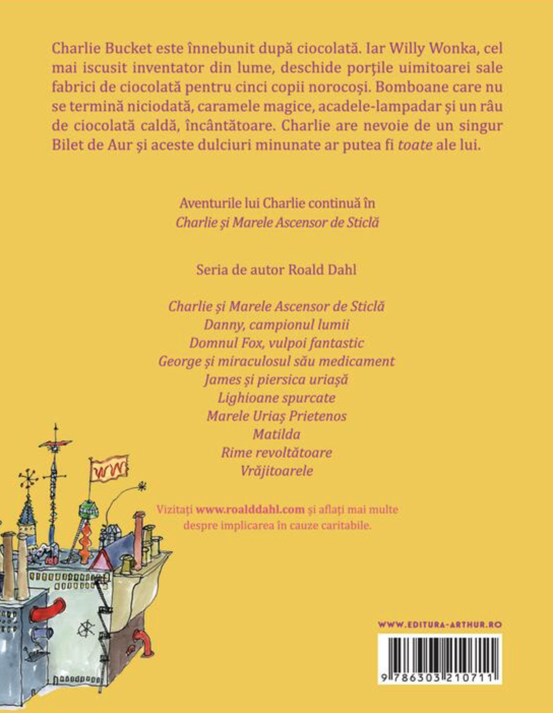 - O lectură distractivă pentru toate vârstele: Deși este o carte pentru copii, "Charlie și fabrica de ciocolată" este apreciată și de adulți datorită temelor sale universale și a umorului său subtil. Este o lectură ideală pentru a fi savurată în familie, oferind oportunități de discuții interesante despre comportament și moralitate.