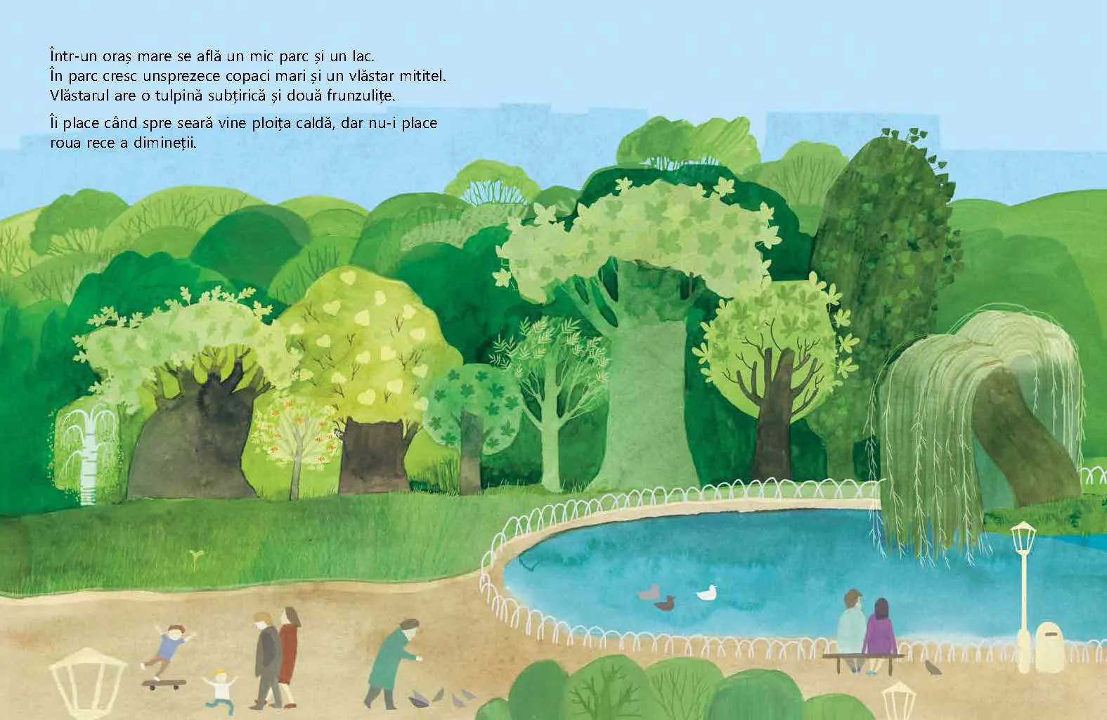 Vlăstarul începe să crească într-un parc din oraș și trăiește o călătorie a descoperirii de sine. Cu cine seamănă, cine îi sunt rudele, cine este el? Sunt atât de mulți copaci în jur! Și atât de diferiți! Mergi în călătoria fascinantă prin parc și află povestea specială a fiecărui copac și trăsăturile distinctive – scoarța, crengile, florile, frunzele.