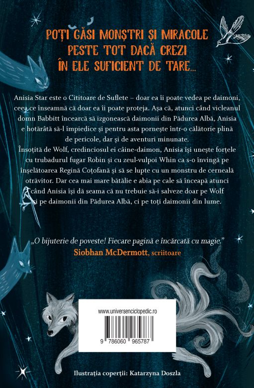 Așa că, atunci când vicleanul domn Babbitt încearcă să izgonească daimonii din Pădurea Albă, Anisia e hotărâtă să-l împiedice și pentru asta pornește într-o călătorie plină de pericole, dar și de aventuri minunate.