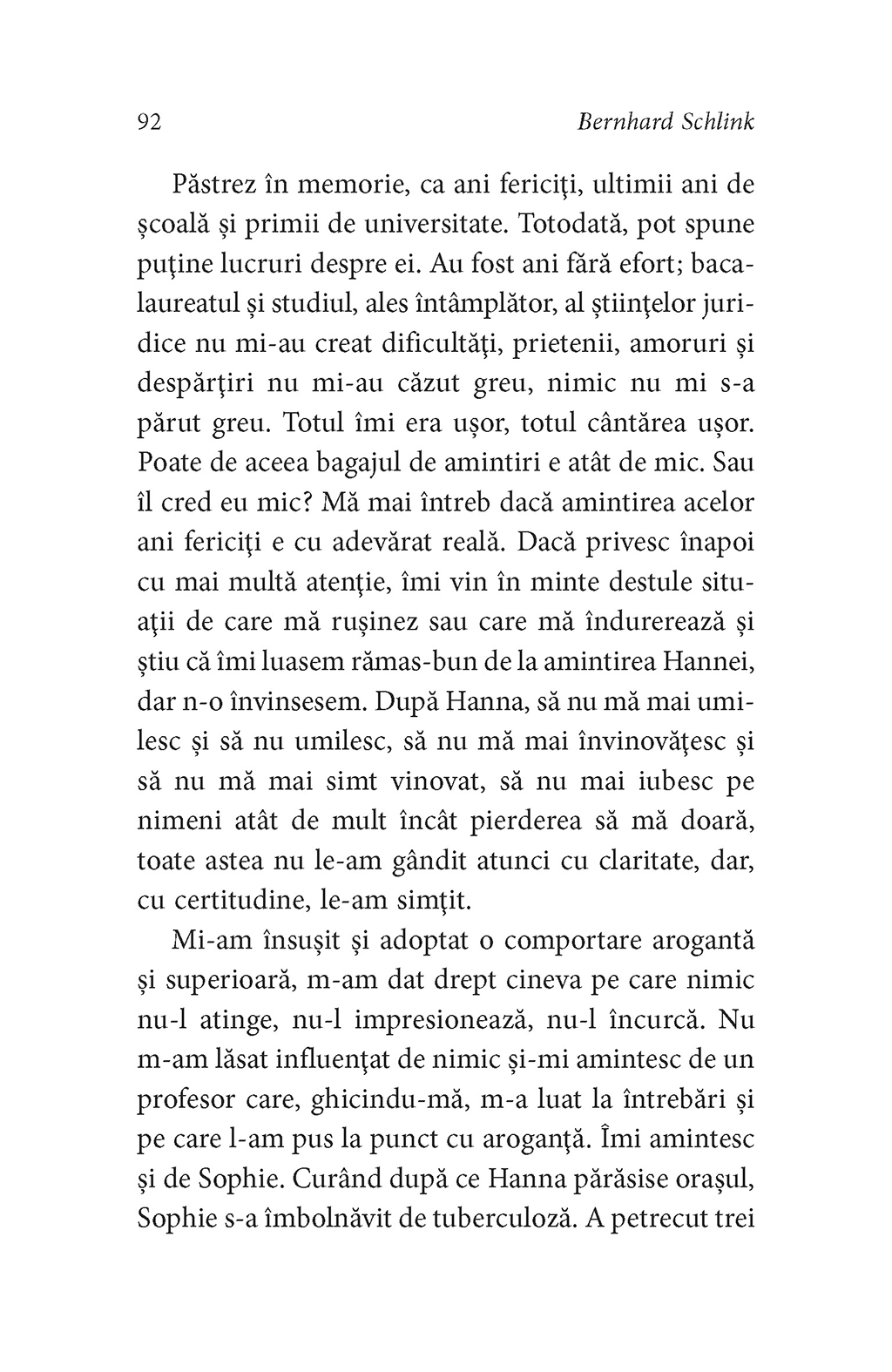 „O carte elegantă, de o rară complexitate morală. Bernhard Schlink îşi spune povestea cu o minunată simplitate.” (The New York Times)