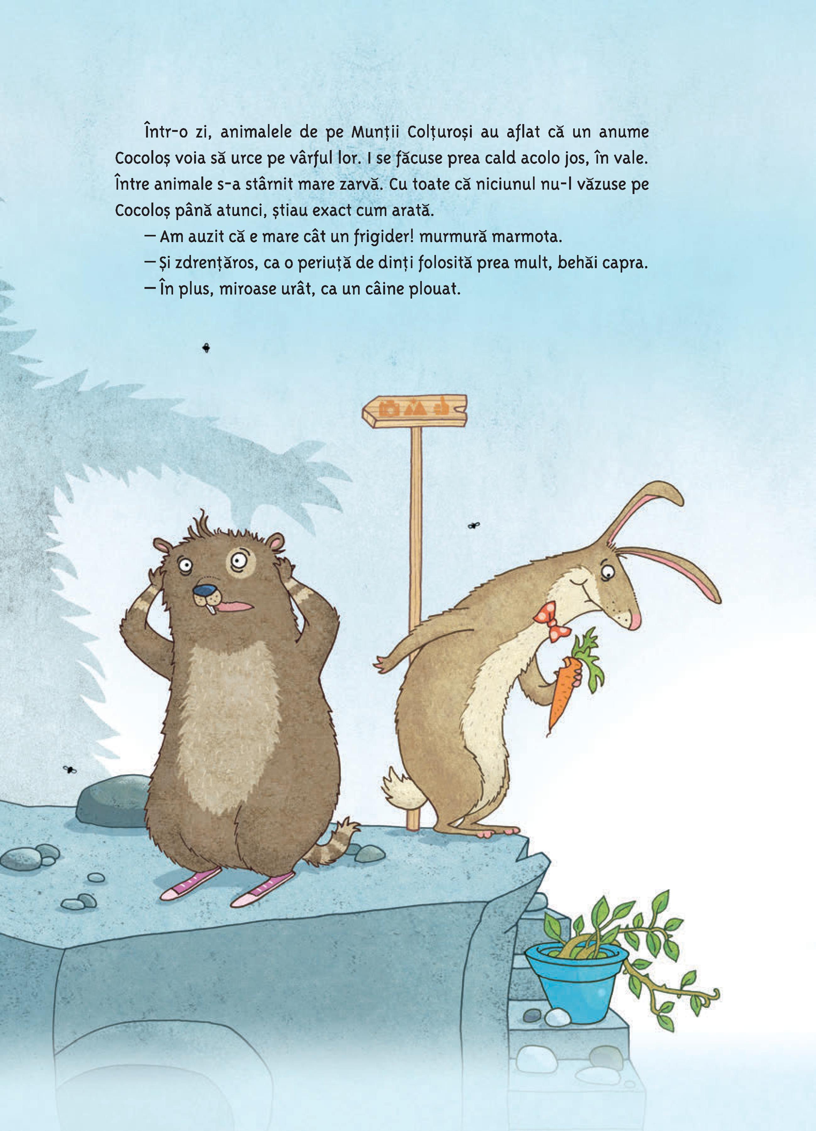 Toate animalele de pe Piscul Mândru sunt îngrozite când Cocoloș vrea să-și facă culcuș pe vârful muntelui. Deși nu l-au văzut, ele știu cum arată: e uriaș, lățos și miroase urât – pe scurt, e înfricoșător! Nimeni nu vrea să-l știe aproape! Dar e prea târziu să mai facă ceva. S-a mutat deja în grota lui și a invitat toți vecinii la petrecerea lui de casă nouă. Nu se pune problema să meargă la el, totuși cineva nu poate rezista tentației...