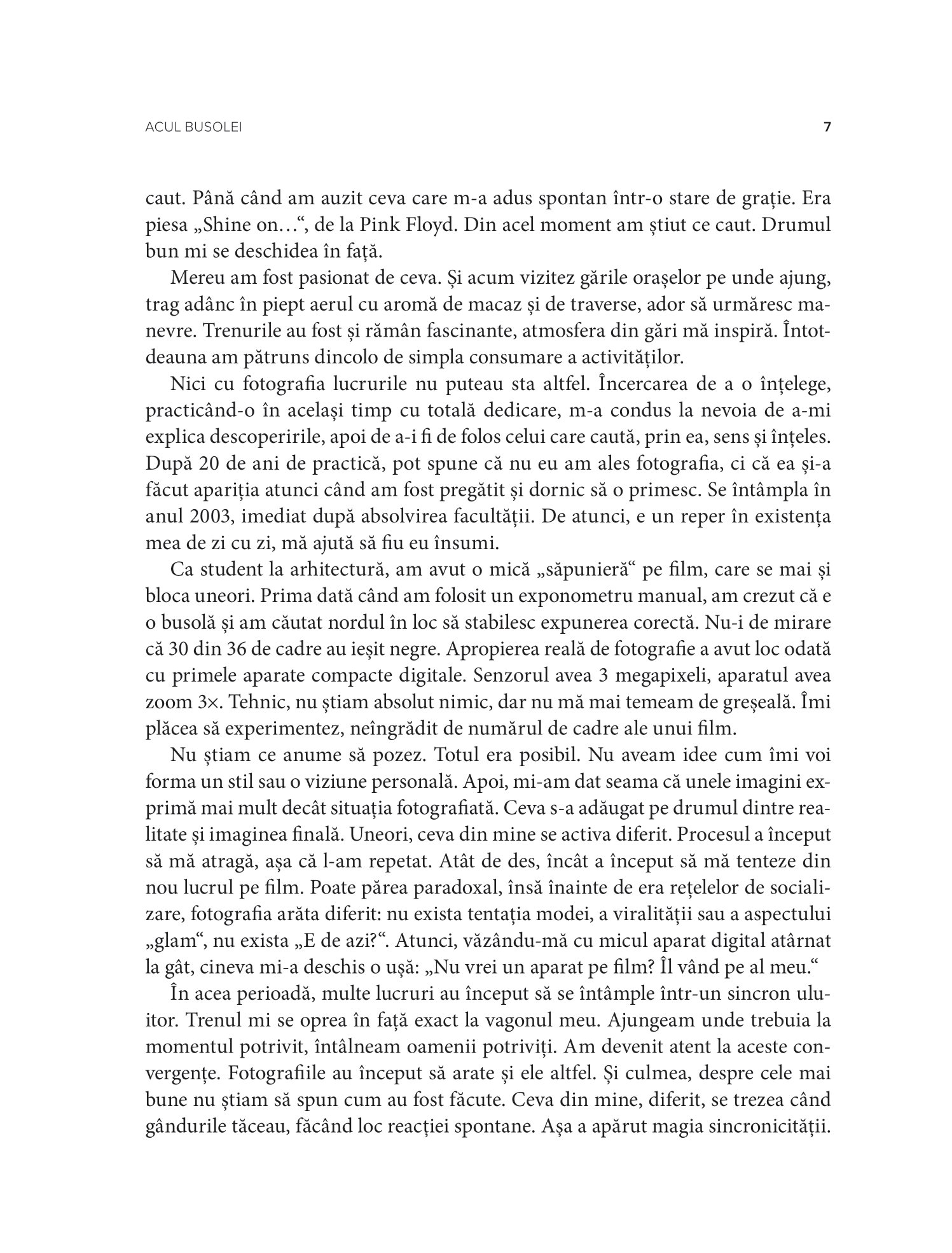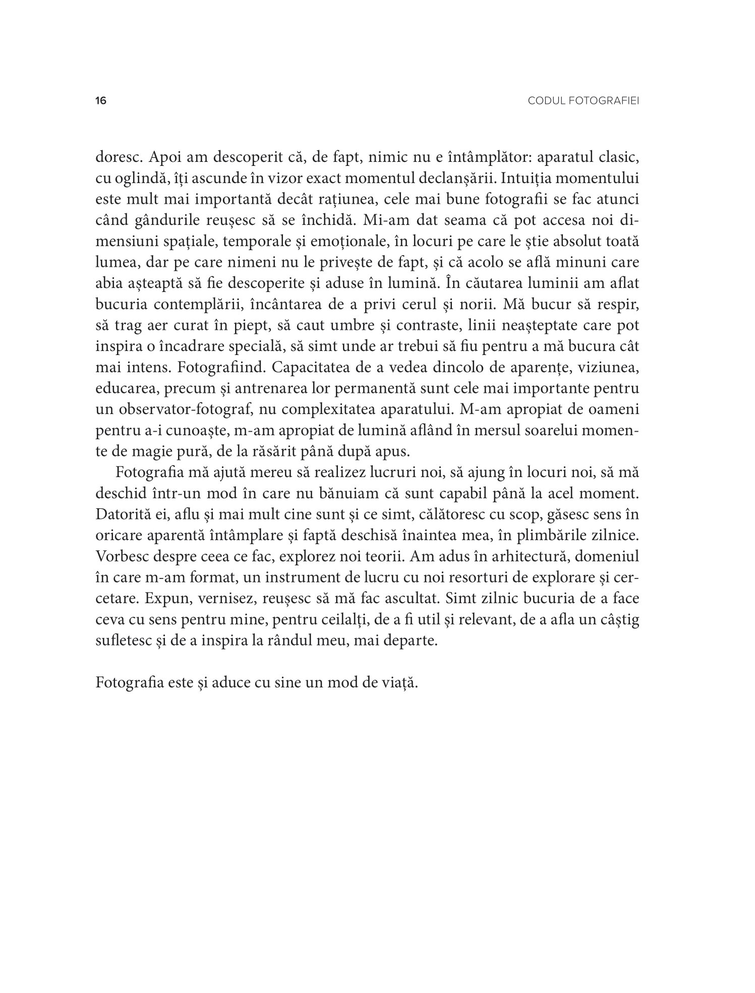 Ghid pentru călătorii interioare și instrumentar estetic, cartea lui Vlad Eftenie e la îndemâna oricui vrea să lase în plan secund setările aparatului și să se acordeze la emoția locului și a clipei, pentru a o surprinde în fotografii irepetabile.
