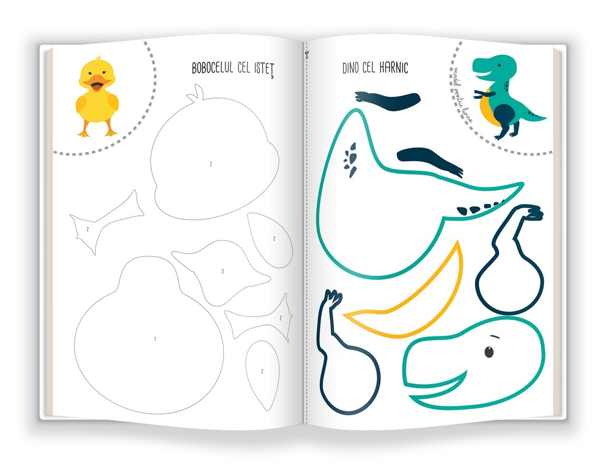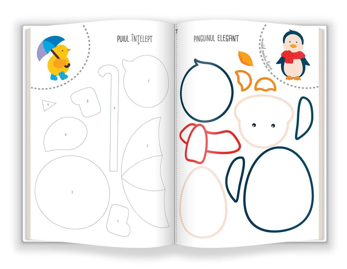 Copilul poate folosi cartea de unul singur, stimulându-și astfel curiozitatea sau poate fi ajutat de unul dintre părinți, colorând împreună. Astfel, coloratul, decupatul și lipitul vor deveni mult mai distractive!