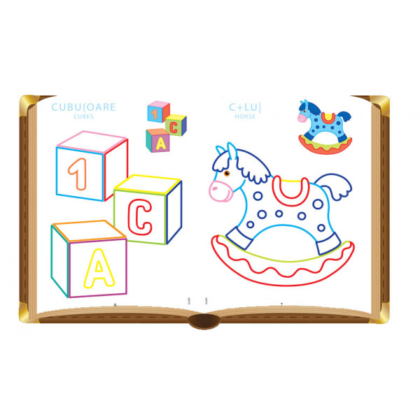 În paginile acestei cărți copiii pot colora jucăriile preferate: păpușa, trenuleț, cuburi, robot, masinuță, corabie, avion, cărucior pentru păpuși, căluț, ursuleț și alte jucării.