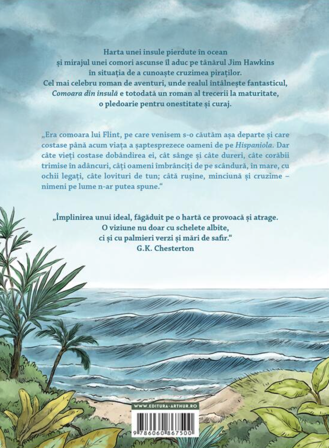 Harta unei insule pierdute în ocean şi mirajul unei comori ascunse îl aduc pe tânărul Jim Hawkins în situația de a cunoaște cruzimea piraților. Cel mai celebru roman de aventuri, unde realul întâlneşte fantasticul, Comoara din insulă e totodată un roman al trecerii la maturitate, o pledoarie pentru onestitate și curaj.