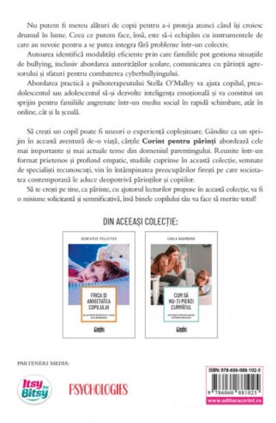 Nu putem fi mereu alături de copii pentru a-i proteja atunci când își croiesc drumul în lume. Ceea ce putem face, însă, este să-i echipam cu instrumentele de care au nevoie pentru a se putea integra fără probleme într-un colectiv. Autoarea identifică modalități eficiente prin care familiile pot gestiona situațiile de bullying, inclusiv abordarea autorităților școlare, comunicarea cu părinții agresorului și sfaturi pentru combaterea cyberbullyingului.