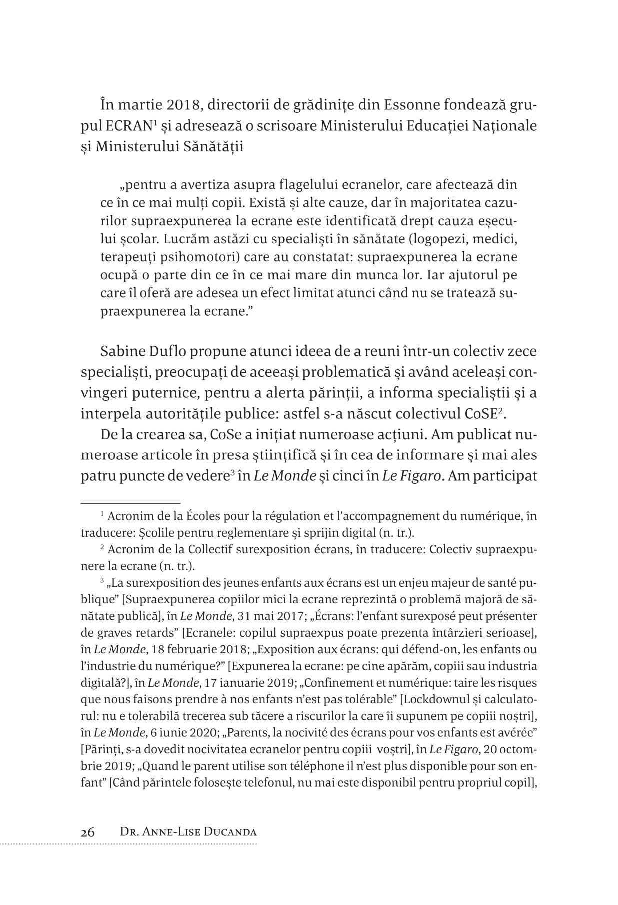 Ecranele oferă plăcere fără a ne solicita vreun efort și creează o puternică dependență. În consecință, părinții, nepregătiți să-și crească și să-și educe copiii într-o lume digitală, se simt adeseori dezorientați și caută sprijin din partea psihoterapeuților sau a cărților de specialitate.