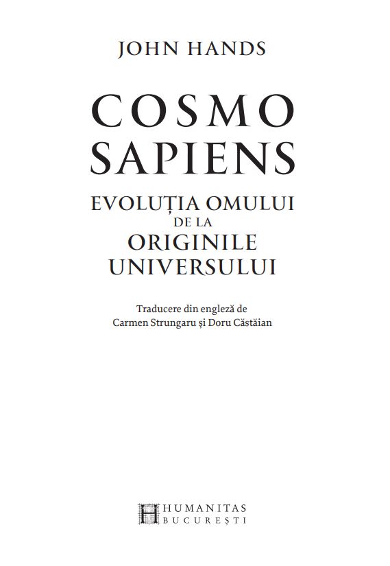 Cosmosapiens se adresează cititorilor pasionați de înțelegerea științifică a lumii și oferă cea mai cuprinzătoare analiză a ideilor științifice actuale, de la inflația cosmică, energia întunecată și formarea Pământului până la apariția vieții, dezvoltarea cooperării și manifestările conștiinței. Prin acest demers, autorul așază evoluția omului în contextul evoluției vieții și a materiei ce alcătuiește întregul univers, arătându-ne totodată cât de multe lucruri am aflat despre noi înșine și lumea în care trăim și cât de multe vom putea descoperi într-un viitor nu foarte îndepărtat.