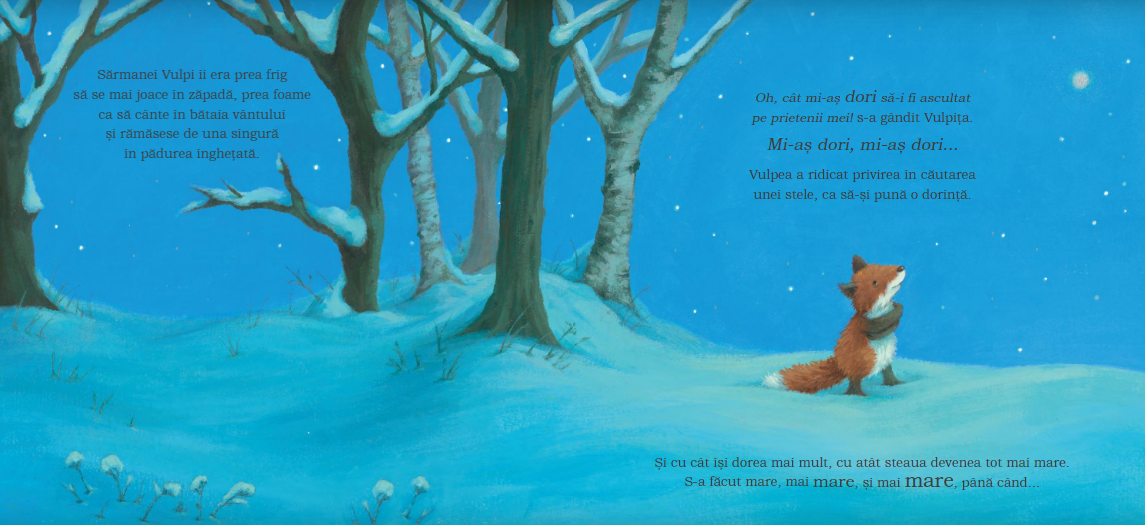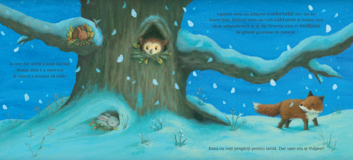 Vulpea e ocupată cu joaca cât e vara de lungă, apoi, când vine iarna, îi e frig, foame și se trezește singură. Dacă și-ar fi ascultat prietenii...