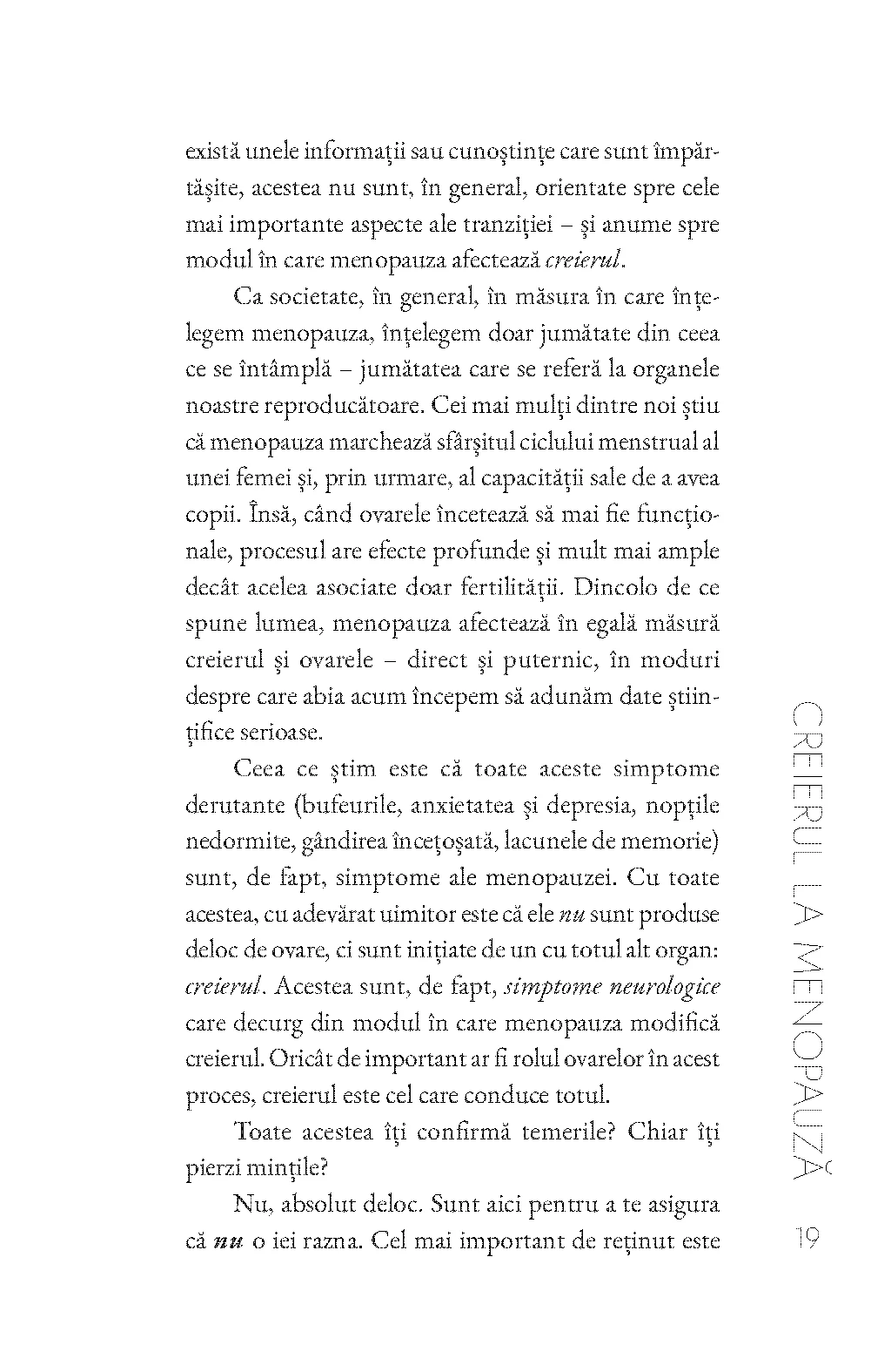 Cercetătoare de top în neuroștiințe, dr. Laura Mosconi explică aceste simptome pornind de la cauzele lor, arătând cum menopauza nu are un impact doar asupra ovarelor, ci este un spectacol hormonal complex în care creierul joacă rolul principal.