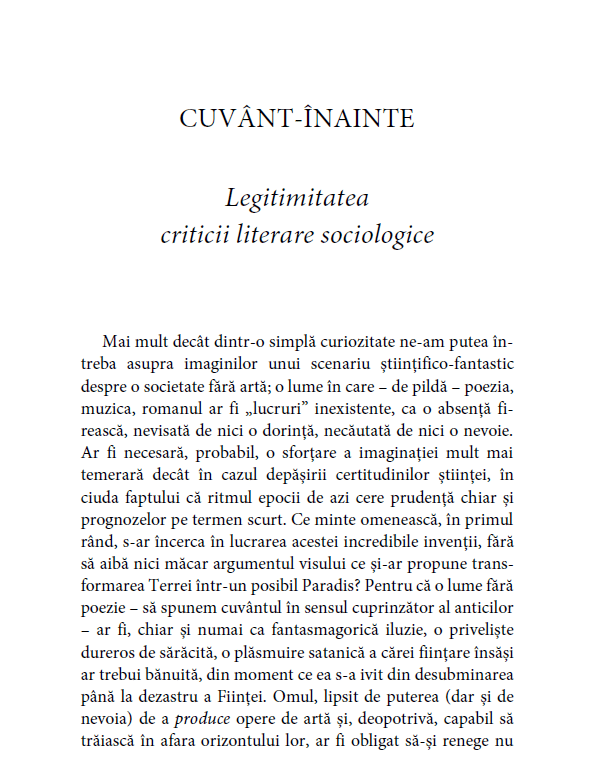 Cu o bibliografie extinsă, preponderent francofonă, a temei abordate, din care nu lipsesc lucrările unor Lucien Goldmann, Robert Escarpit, Pierre Bourdieu, Serge Doubrovsky, Georg Lukács sau Pierre Francastel și nici contribuțiile românești ale unor cercetători ca Traian Herseni, Paul Cornea, Adrian Marino și Ion Ianoși, cartea lui Ion Vasile Șerban instituie, în momentul apariției, un dialog consistent cu ideile promovate în epocă de nume cu mare autoritate pentru domeniul sociologiei literare și, citită astăzi, nu pare deloc datată, ci incită la dezbatere.