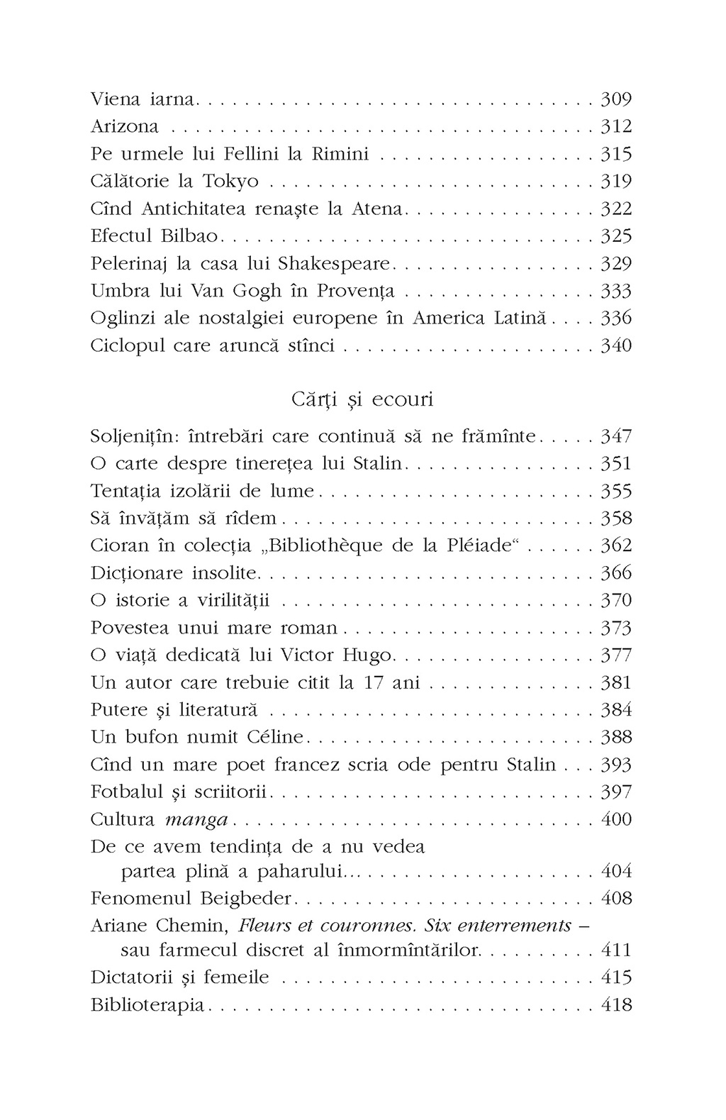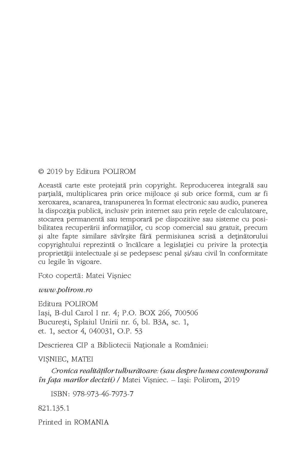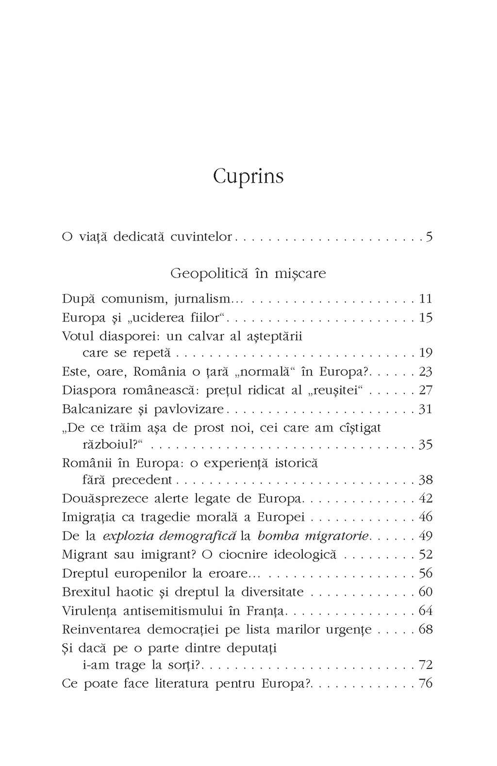 La zece ani de la apariția volumului Cronica ideilor tulburătoare, Matei Vișniec revine cu o selecție de articole și eseuri social-politice și culturale. Acestea ne înfățișează portretul unei lumi în schimbare accelerată, dar și portretul unui om avid să înțeleagă realitățile tulburătoare din jurul său. Mereu cu un pas înaintea armatei de istorici, eseiști, sociologi, filozofi, politologi, jurnaliști, lumea contemporană evoluează atît de rapid, de subtil și de surprinzător, încît instrumentele cu care este studiată devin în scurt timp perimate. În această situație este necesar un efort continuu de reflecție critică pentru a înțelege ce se întîmplă și pentru a lua decizii privind viitorul. O întrebare răvășitoare traversează întreaga carte: oare va fi necesar, avînd în vedere mersul istoriei prezente, să se renunțe la democrație și la libertate în schimbul securității și al conservării mediului înconjurător?