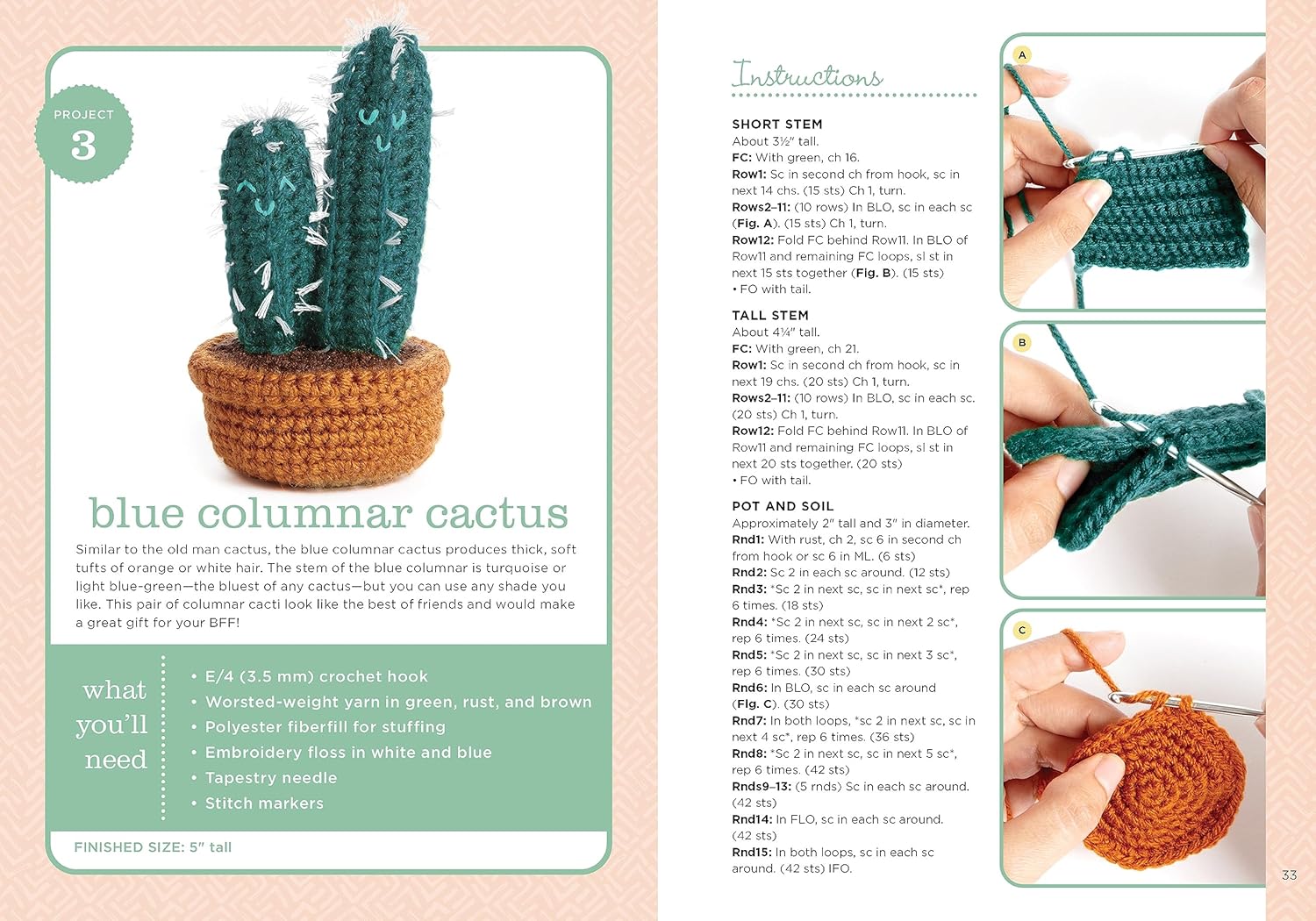 Each project is less than five inches tall and all of the plants and pots are designed to be interchangeable. Helpful tips and techniques for crochet stitches, embroidery, and three-dimensional shapes are also covered.