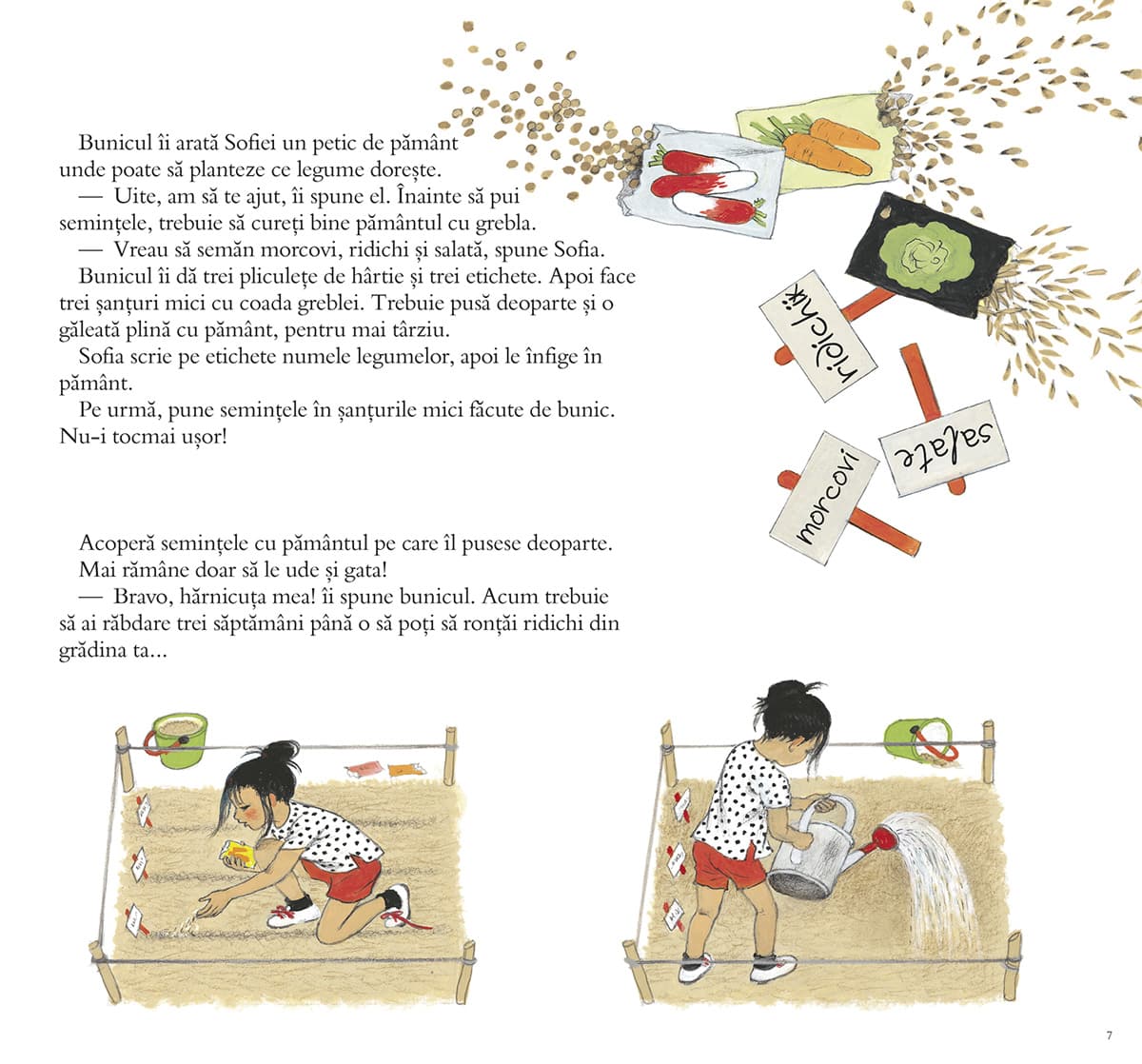 Cum crește grădina mea? se întreabă Sofia, o fetiță care locuiește la oraș, dar care își petrece toate vacanțele la țară, la bunici. Aceștia au o grădină minunată, în care se fac tot felul de legume. Anul acesta, Sofia a primit în dar unelte potrivite pentru ea și își va face propria grădină de legume.