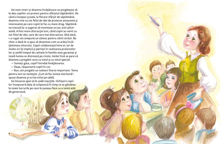 Doamna învățătoare are o idee grozavă de temă pentru elevii ei. Da, ați auzit bine, copiii din clasă abia așteaptă să rezolve proiectul pentru sfârșitul de săptămână. Are un titlu care îi inspiră aproape pe toți: Cum să fac lumea mai bună.