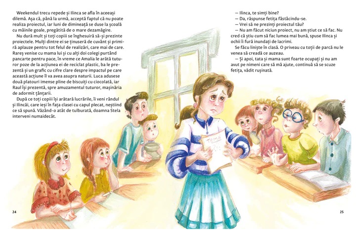 Aproape pe toți, dar nu și pe Ilinca. Fetița, de obicei săritoare și prietenoasă, păstrează tăcerea, gânditoare în timp ce toți ceilalți nu mai prididesc să-și prezinte ideile. Ce s-o fi întâmplat oare cu Ilinca?!