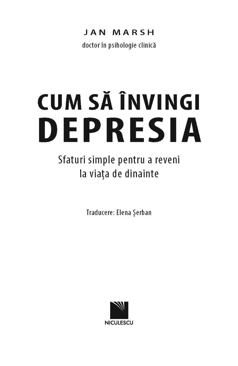Cartea de fata exploreaza atat depresia in sine, cat si modalitatile prin care poti sa o invingi, intr-o maniera simpla, deloc critica si, mai presus de toate, eficienta.