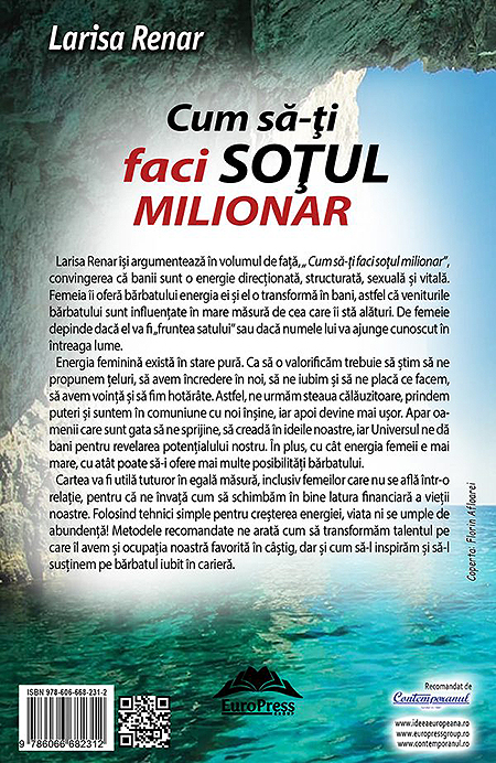 Larisa Renar își argumentează în volumul de față, „Cum să-ţi faci soțul milionar”, convingerea că banii sunt o energie direcționată, structurată, sexuală și vitală. Femeia îi oferă bărbatului energia ei și el o transformă în bani, astfel că veniturile bărbatului sunt influențate în mare măsură de cea care îi stă alături. De femeie depinde dacă el va fi „fruntea satului” sau dacă numele lui va ajunge cunoscut în întreaga lume.