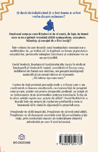Cartea de față prezintă poveștile reale a 17 femei care s-au confruntat cu foamea emoțională, cu rușinea față de propriul corp și care, printr-un proces terapeutic profund, au reușit să se redescopere și să-și revendice puterea interioară. În loc să le ofere soluții rapide sau „rețete de slăbit”, David Bedrick le-a însoțit într-un proces de explorare profundă a ceea ce înseamnă să te simți în siguranță în propriul corp.