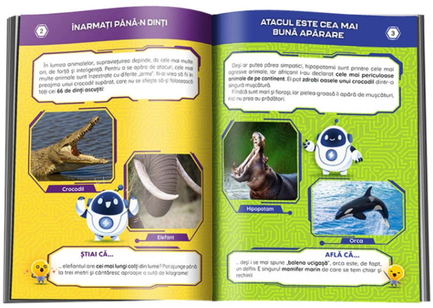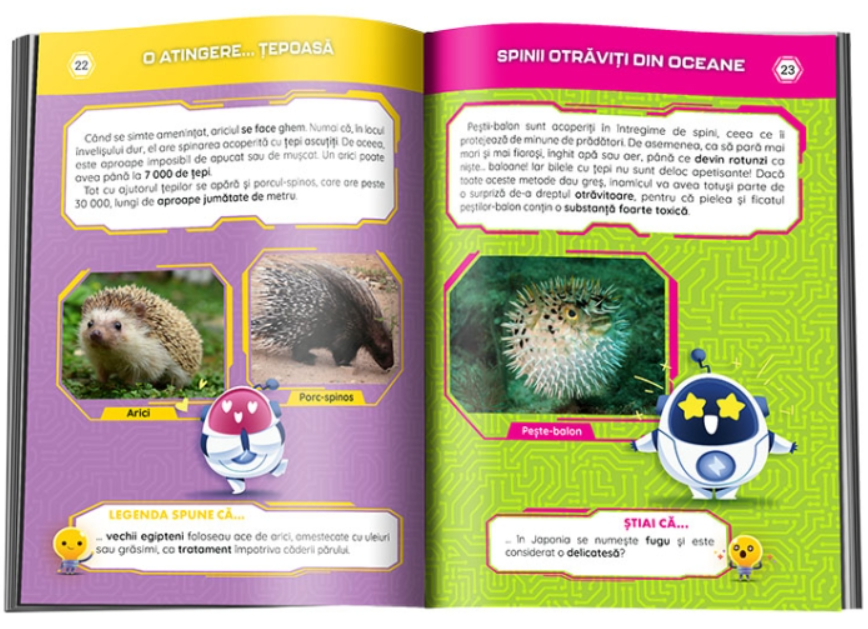 Dacă ești pasionat de biologie și de mecanismele de apărare ale viețuitoarele, vei afla unde trăiesc broscuțe otrăvitoare, de ce se camuflează, de fapt, cameleonii, ce animal își împroașcă atacatorii cu sânge și multe altele.