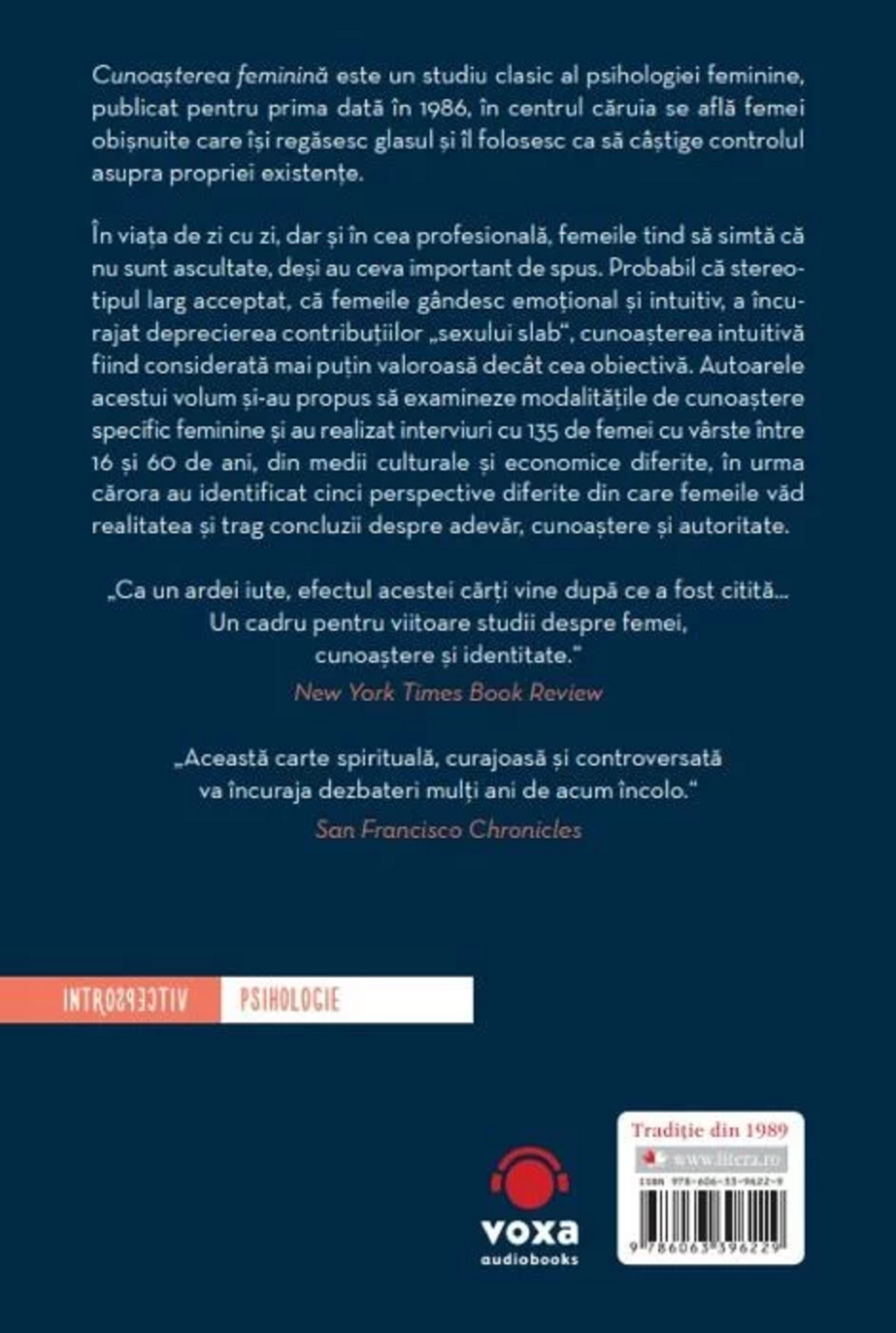 În viața de zi cu zi, dar și în cea profesională, femeile tind să simtă că nu sunt ascultate, deși au ceva important de spus. Probabil că stereotipul larg acceptat, că femeile gândesc emoțional și intuitiv, a încurajat deprecierea contribuțiilor „sexului slab“, cunoașterea intuitivă fiind considerată mai puțin valoroasă decât cea obiectivă. Autoarele acestui volum și-au propus să examineze modalitățile de cunoaștere specific feminine și au realizat interviuri cu 135 de femei cu vârste între 16 și 60 de ani, din medii culturale și economice diferite, în urma cărora au identificat cinci perspective diferite din care femeile văd realitatea și trag concluzii despre adevăr, cunoaștere și autoritate.