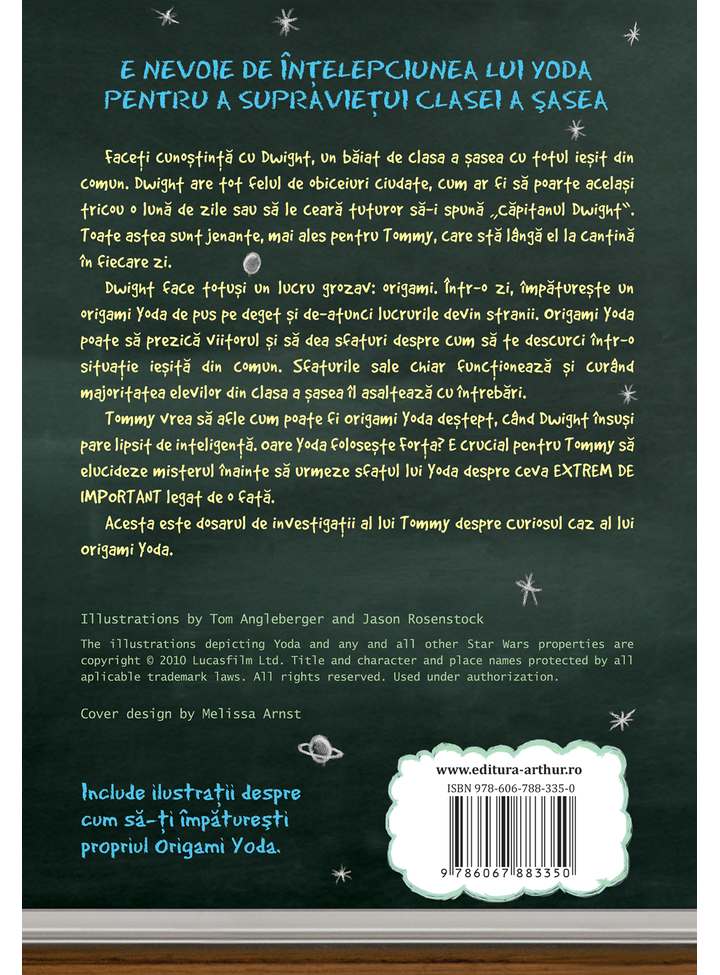 Bonus: În carte vei găsi ilustrații despre cum să-ți împăturești propriul Origami Yoda.
