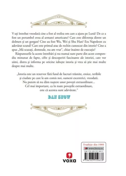 Răspunsurile la aceste întrebări și nu numai sunt parte din acest compendiu minunat de fapte, cifre și descoperiri fascinante ale istoriei, care vor uimi, distra și informa pe oricine iubește istoria și vrea să știe mai multe despre mai multe.