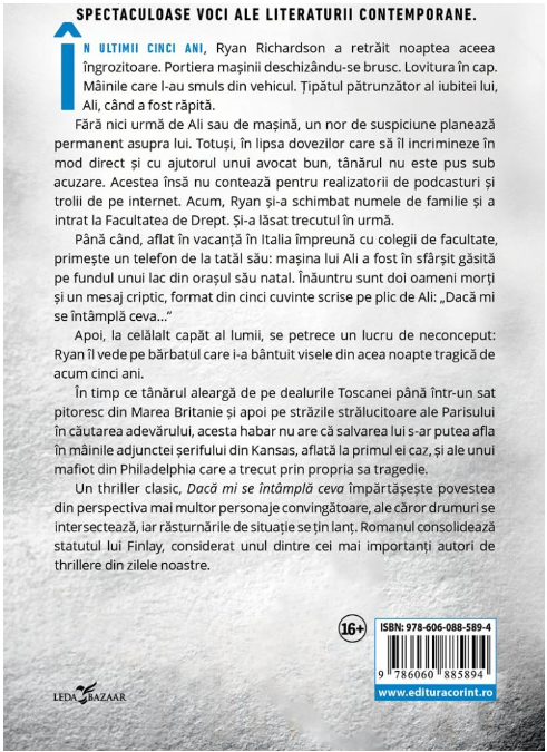Până când, aflat în vacanță în Italia împreună cu colegii de facultate, primește un telefon de la tatăl său: mașina lui Ali a fost în sfârșit găsită pe fundul unui lac din orașul său natal. Înăuntru sunt doi oameni morți și un mesaj criptic, format din cinci cuvinte scrise pe plic de Ali: „Dacă mi se întâmplă ceva…”