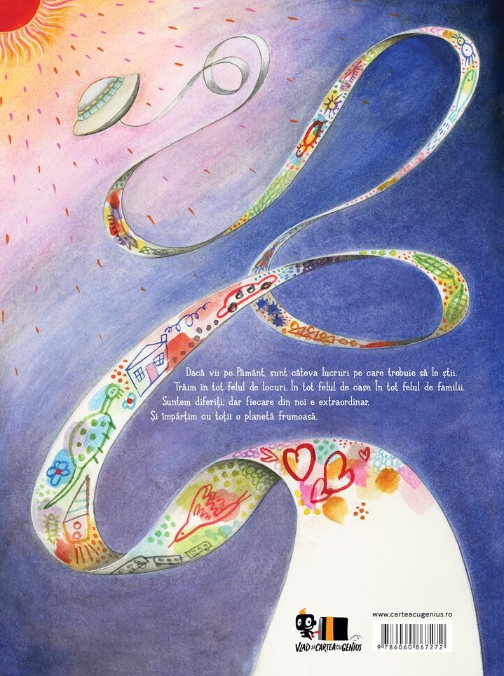 Dacă vii pe Pământ, sunt câteva lucruri pe care trebuie să le știi. Trăim în tot felul de locuri. În tot felul de case. În tot felul de familii. Suntem diferiți, dar fiecare din noi e extraordinar. Și împărțim cu toții o planetă frumoasă.