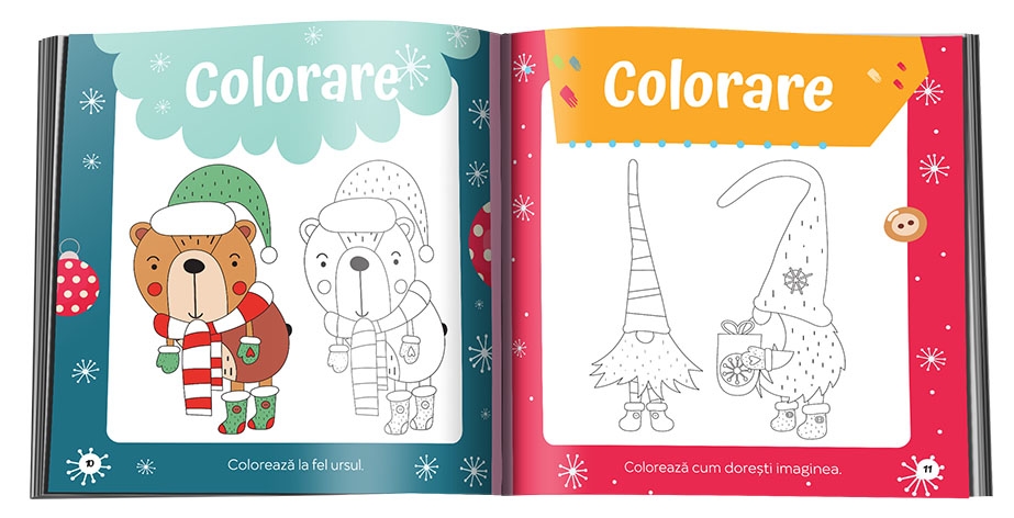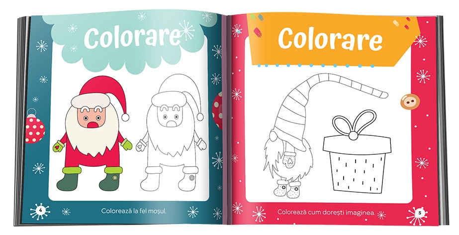 În De Crăciun, colorez și desenez, va putea:
