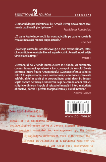 „Romanul despre Palestina al lui Arnold Zweig este o proză realmente captivantă și sclipitoare.” (Frankfurter Rundschau)