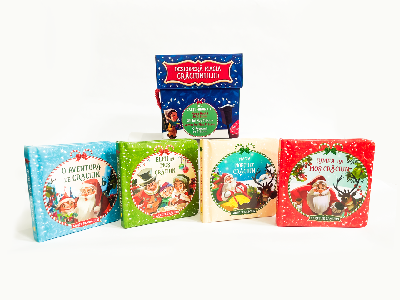 Descoperă 'Magia Nopții', 'Elfii lui Moș Crăciun', 'Lumea lui Moș Crăciun' și 'O aventură de Crăciun', fiecare aducând în prim-plan personaje și locuri pline de farmec. Cu aceste povești, fiecare seară devine un moment special de lectură și visare pentru întreaga familie.