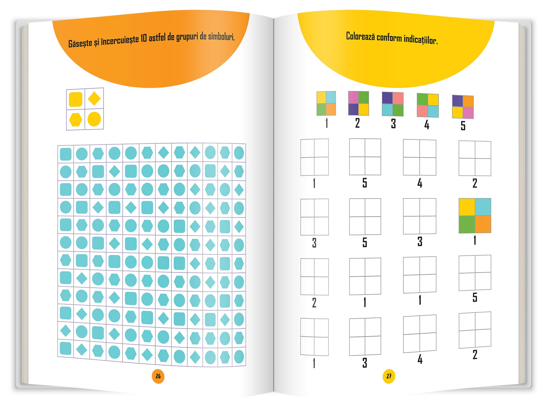 • să găsească, să potrivească și să numere forme;