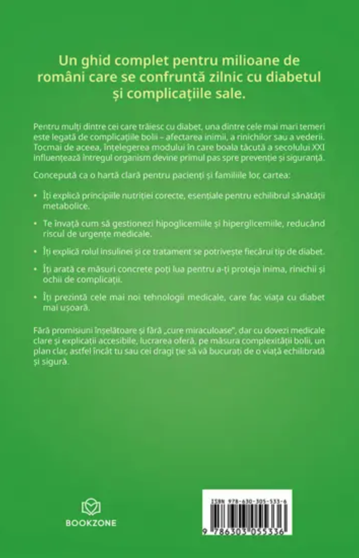 Concepută ca o hartă practică pentru pacienți, familii și persoane cu risc crescut, această carte îți explică principiile alimentației echilibrate și te ajută să construiești farfuria ideală pentru prevenirea dezechilibrelor metabolice. Învață cum să previi și să controlezi diabetul, pas cu pas — cu informații clare, soluții reale și sprijin medical de încredere!