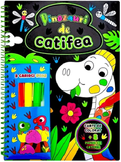 Dinozauri de catifea - Cu 3 carioci neon