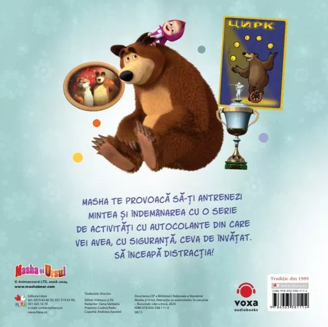 Masha te provoacă să-ți antrenezi mintea și îndemânarea cu o serie de activități cu autocolante din care vei avea, cu siguranță, ceva de învățat. Să înceapă distracția!