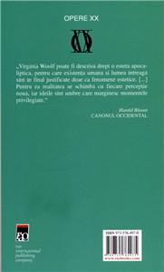 "Virginia Woolf poate fi descrisa drept o esteta apocaliptica, pentru care existenta umana si lumea intreaga sint in final justificate doar ca fenomene estetice.[...] Pentru ea realitatea se schimba cu fiecare perceptie noua, iar ideile sint umbre care marginesc momentele privilegiate." Harold Bloom