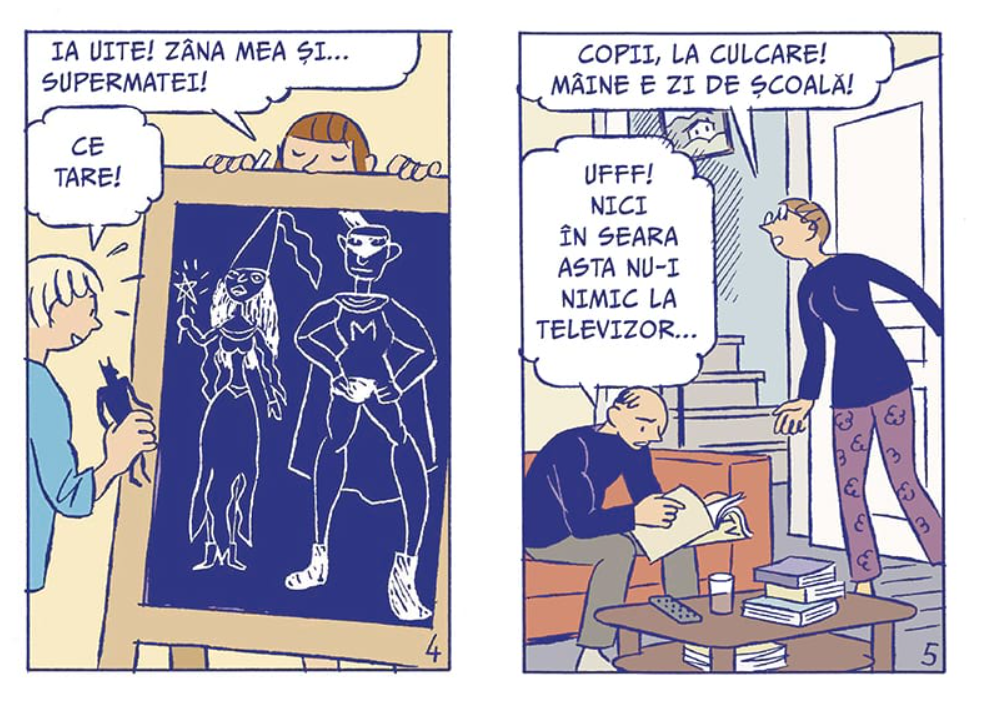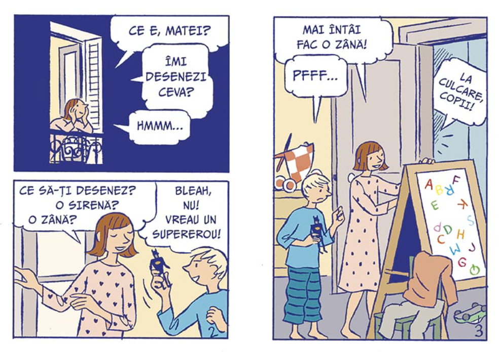 E seară și se apropie vremea de culcare. Matei și Zoe nu au chef de somn și trag de timp desenând. Zoe desenează o zână, iar Matei, un supererou.