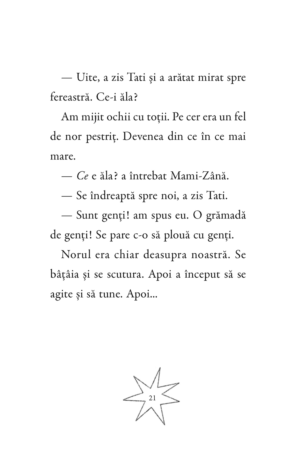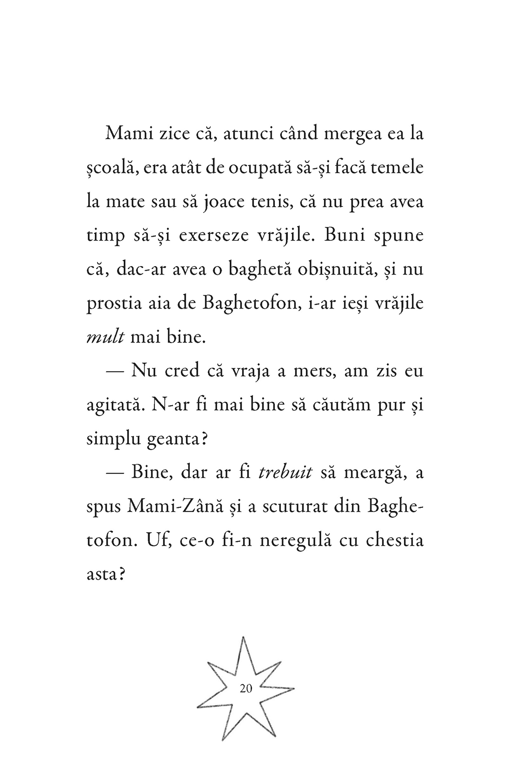 Mami arată normal, la fel ca toate mamele... dar nu e. De fapt, ea se transformă în zînă cînd ţi-e lumea mai dragă. Şi, cînd o să fiu mare, mă fac şi eu zînă, ca ea. Ştiu de pe-acum prima mea vrajă. O să fac să apară primul meu unicorn.