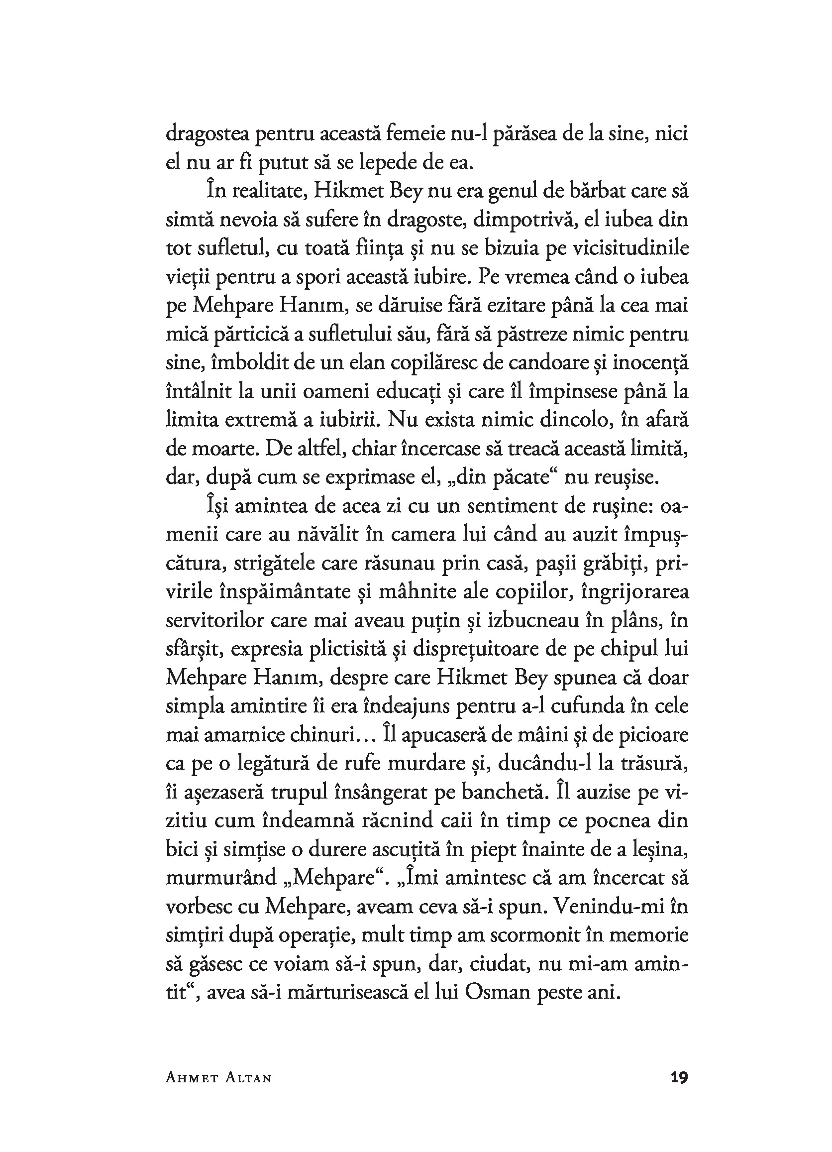Ahmet Altan (n. 1950) este unul dintre cei mai citiți prozatori turci, dar și un jurnalist redutabil. A fost adus in fața instanței de cel puțin 100 de ori din cauza opiniilor sale politice incomode și a stilului său direct. Este cunoscut ca unul dintre primii intelectuali turci care au recunoscut că ceea ce Imperiul Otoman a făcut populației armene se califică drept genocid. In 2016, in urma puciului eșuat din Turcia, Altan a fost judecat și condamnat pentru că ar fi transmis „mesaje subliminale” puciștilor in timpul unei emisiuni televizate. Deși condamnat la închisoare pe viață, in aprilie 2021, Curtea Supremă de Apel a Turciei a dispus eliberarea lui.