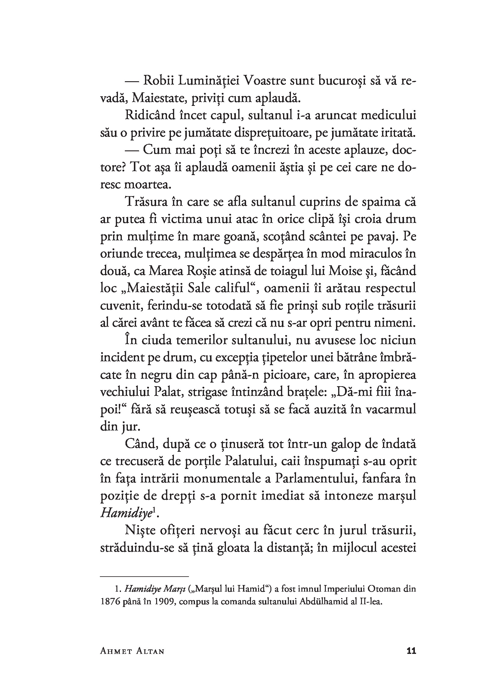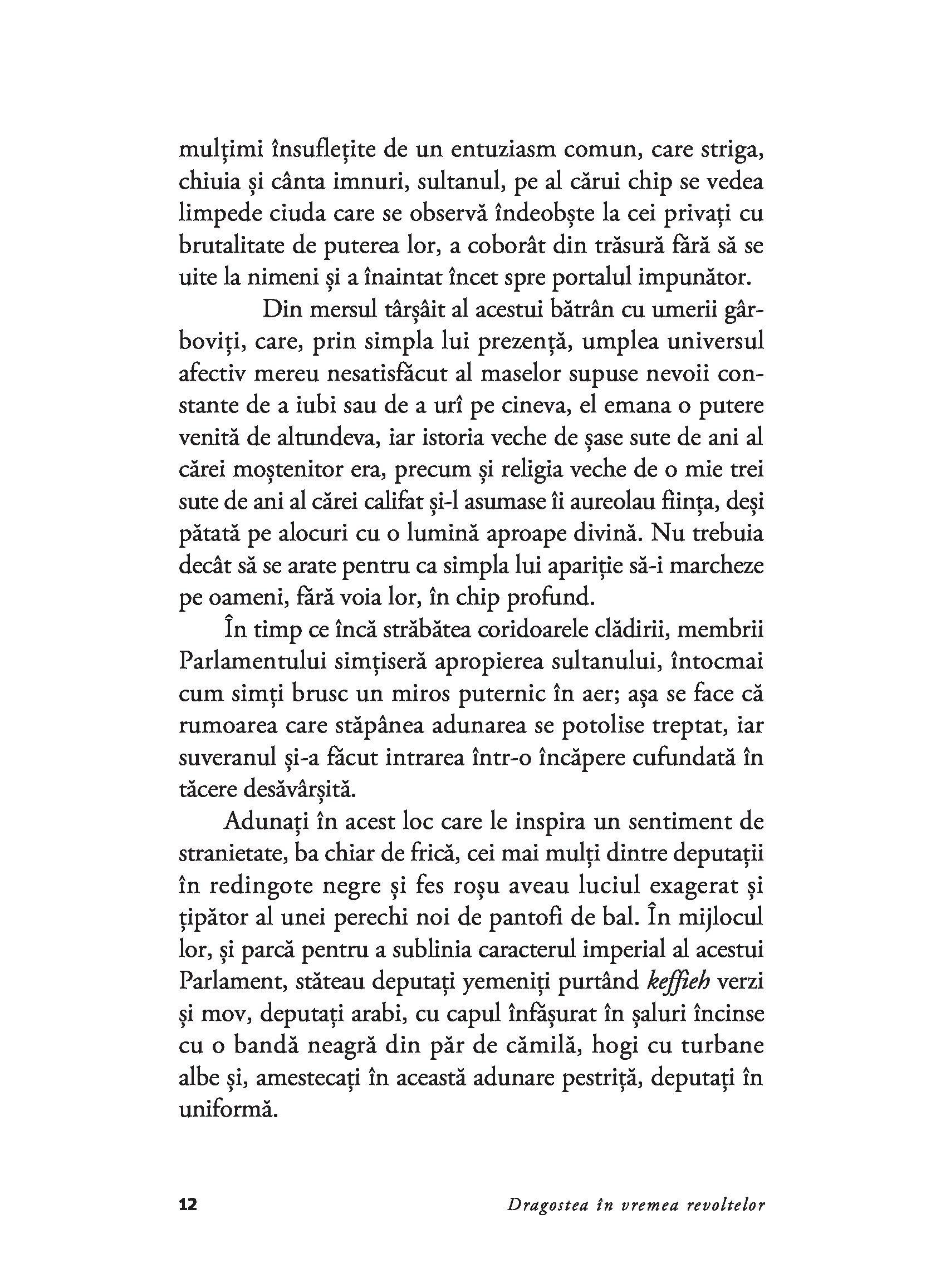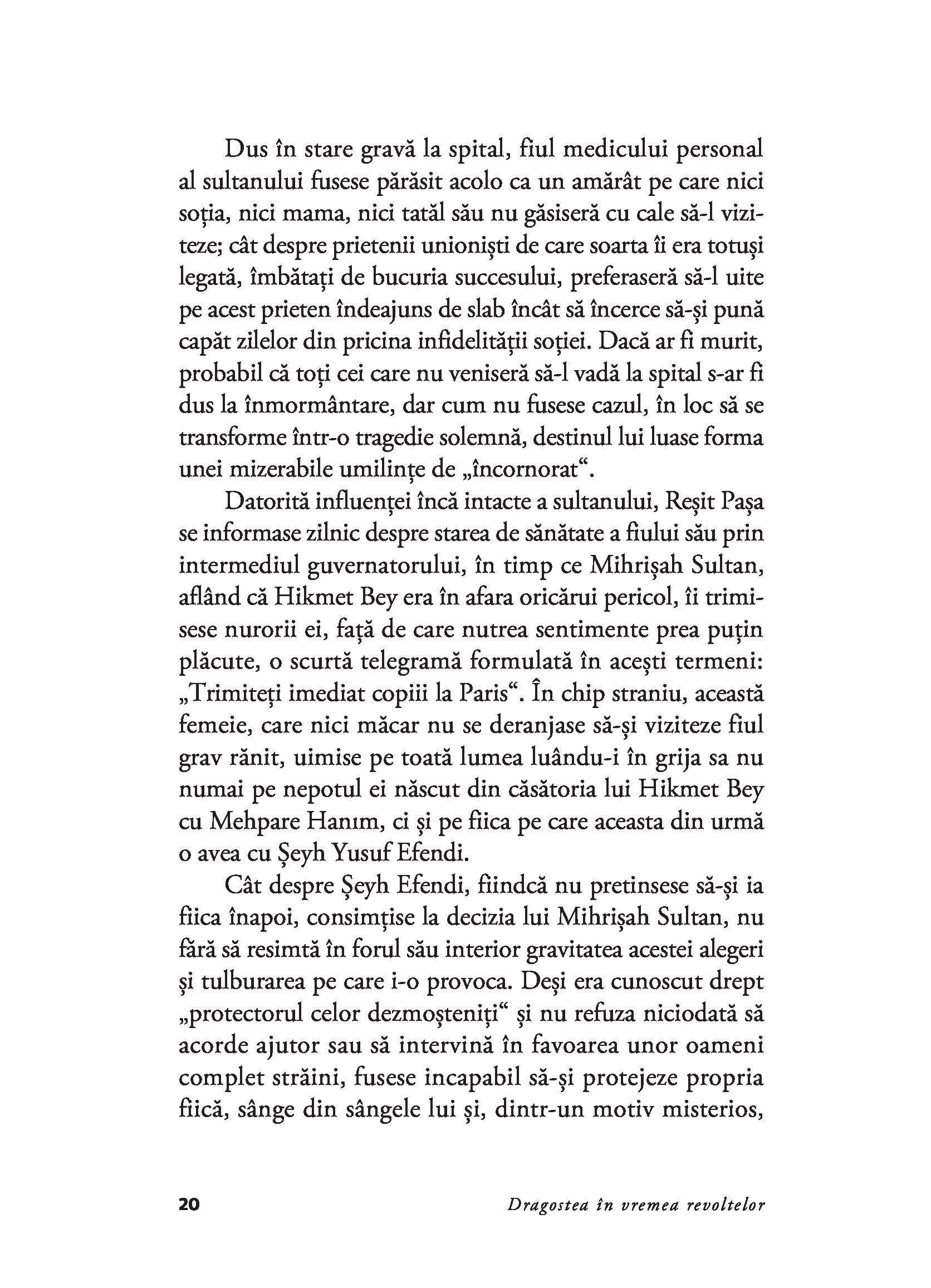 In timp ce Hikmet Bey iși recapătă gustul pentru viață și se instalează intr-o locuință luxoasă, departe de oraș, cititorul se trezește dintr-odată atras in inima unei fresce fascinante in care marea istorie se desfășoară de-a lungul unei galerii de figuri de neuitat. Iubirile lor, speranțele, eterna meschinărie a comportamentului, dar și fragilitatea emoționantă a umanității lor fac din această carte un remarcabil roman de dragoste și aventuri, povestea zguduitoare a unei revoluții prea puțin cunoscute Occidentului.