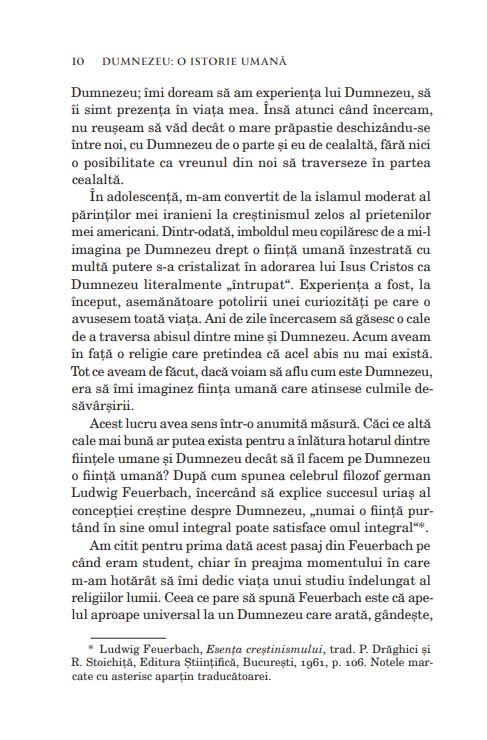 Reza Aslan ne oferă un inedit tratat de istorie a religiilor, pornind de la religiile animiste ale preistoriei, trecând prin diferitele religii politeiste ale Antichității și ajungând la monoteismele complexe de mai târziu. Căutând „inefabila experienţă a credinţei“, autorul demonstrează că fiecare religie și fiecare credincios, conștient sau nu, își creează zeul sau zeii luând ca model omul, cu toate ale sale, bune sau rele. Istoria lui Dumnezeu este istoria omului. Respingând interpretările literale ale cărţilor sacre, fanatismul și fundamentalismul, Reza Aslan pledează pentru un „umanism spiritual“, poate singurul capabil să salveze omenirea.