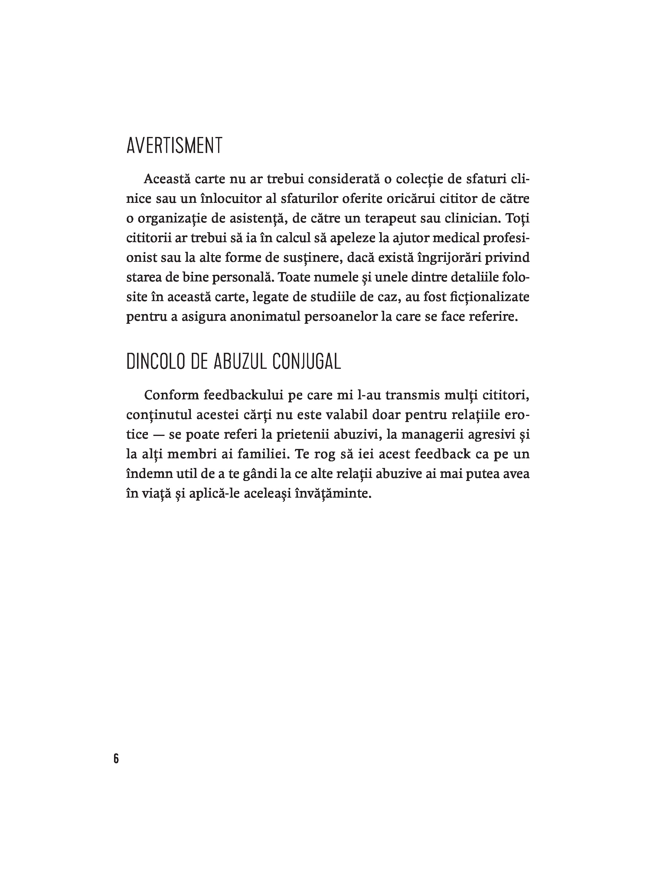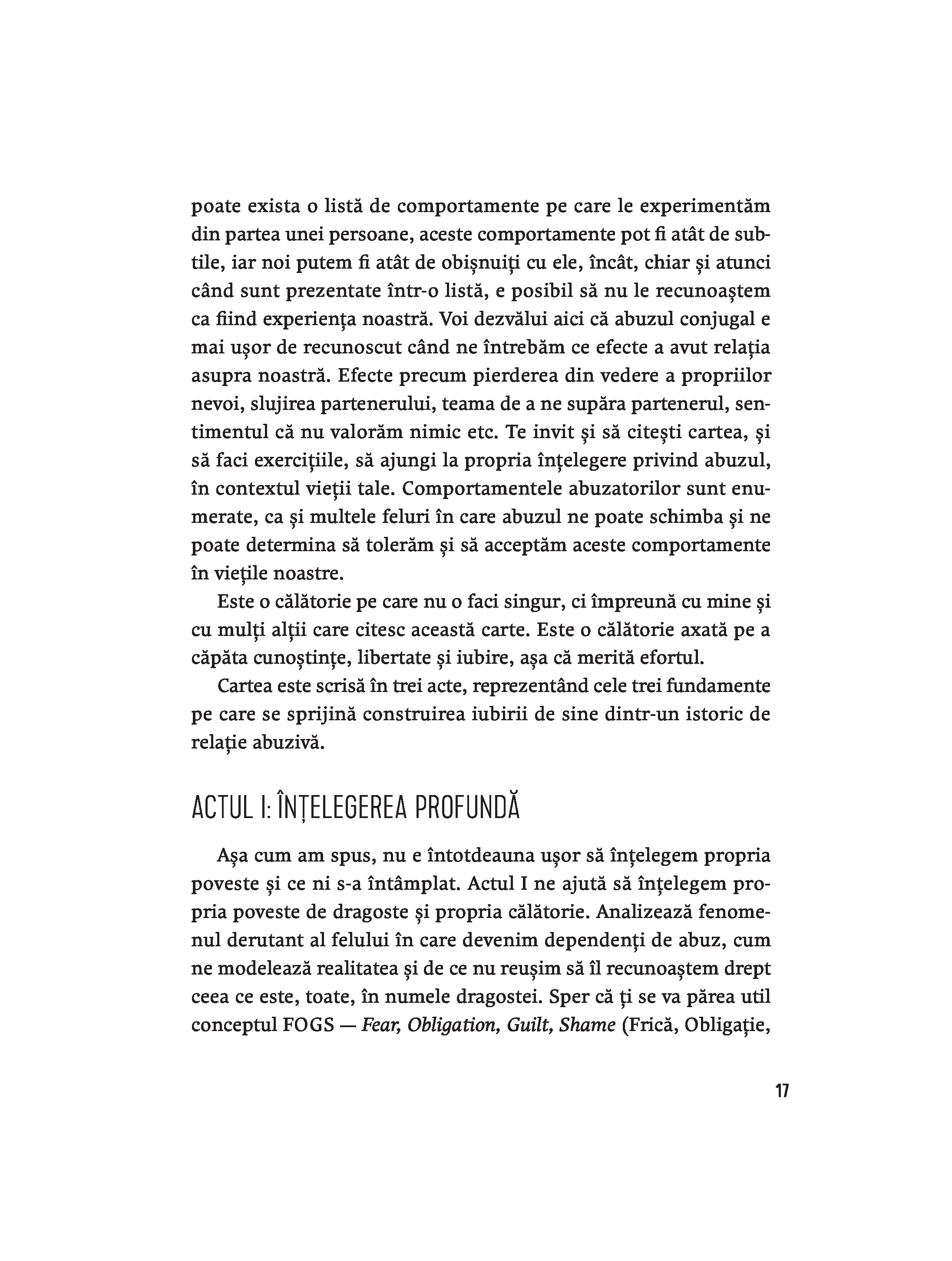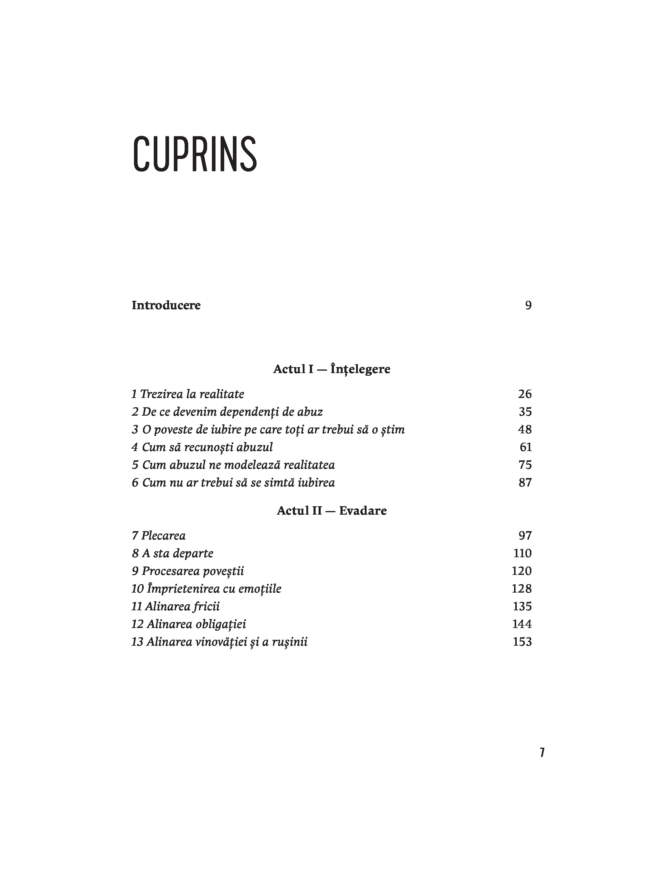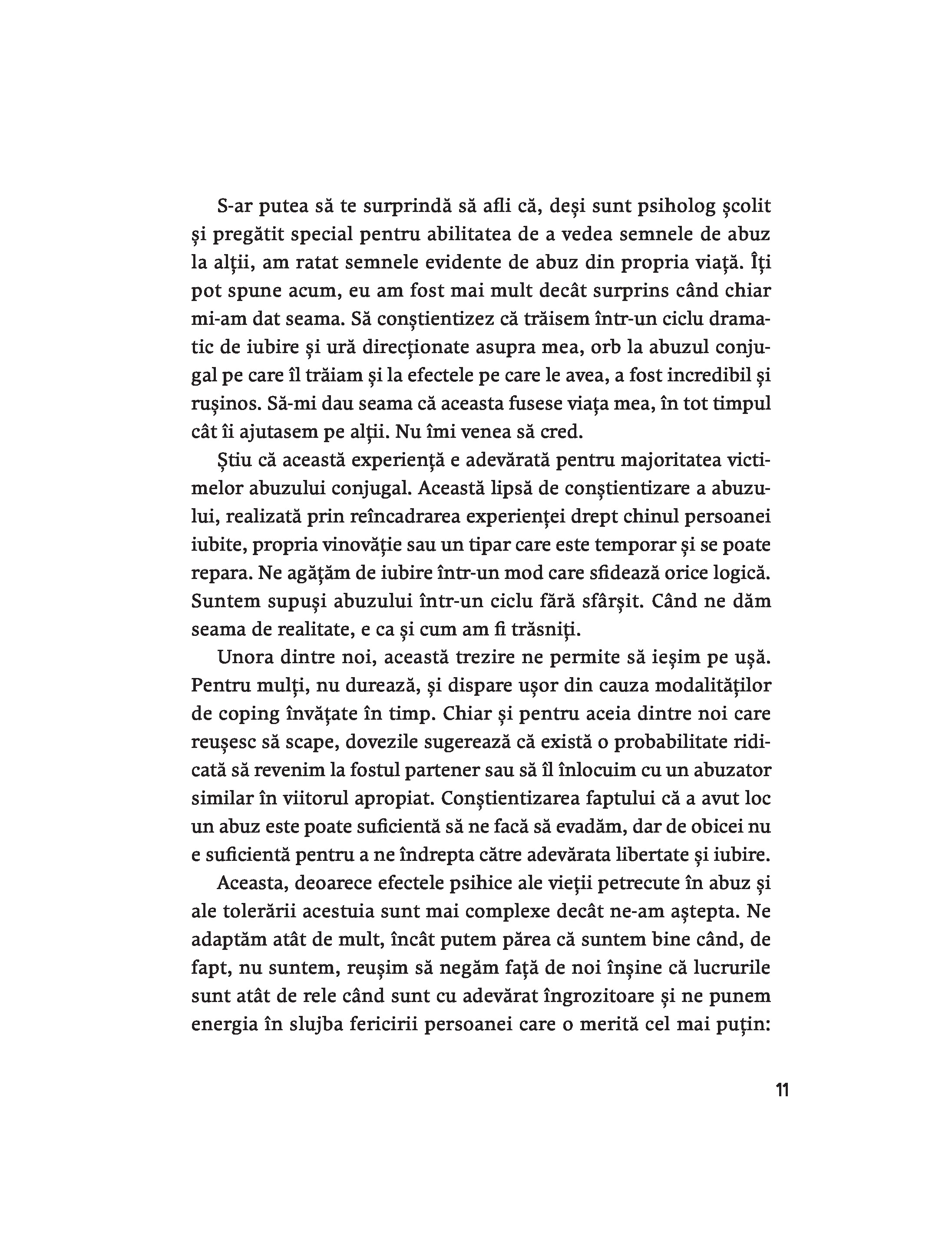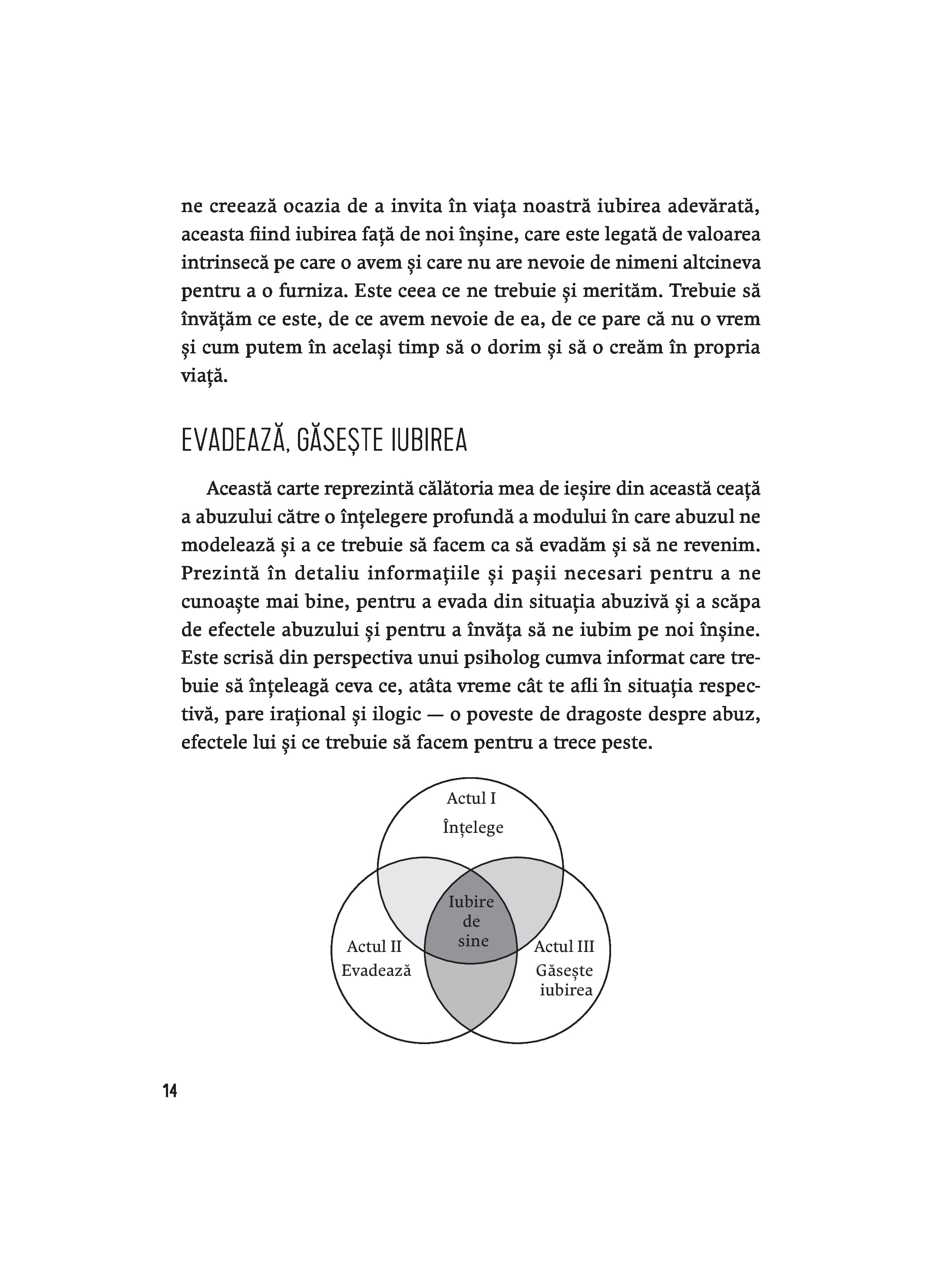 Autorul acestei cărți, care a trecut el însuși printr-o relație toxică, îți propune o călătorie în trei etape, ce te va ajuta în primul rând să înțelegi cum s-a ajuns de la „al nouălea cer“ la iad și să faci pașii necesari pentru a ieși din acea situație și pentru a nu mai intra vreodată într-un ciclu abuziv.