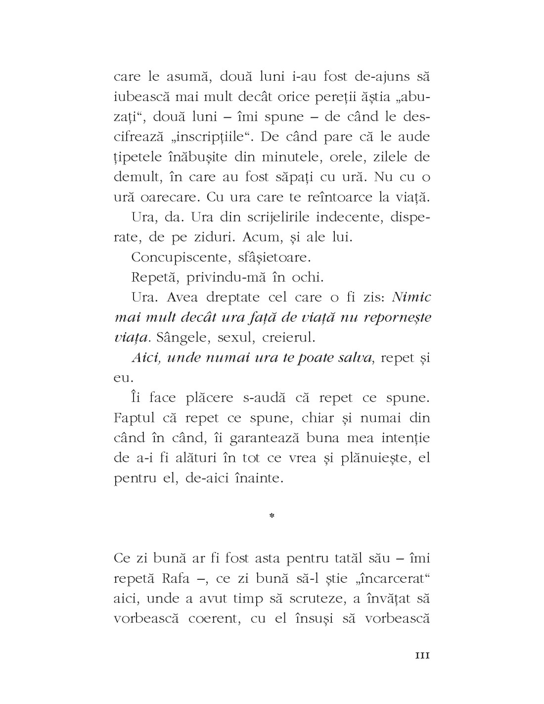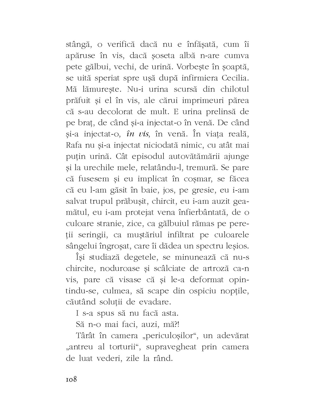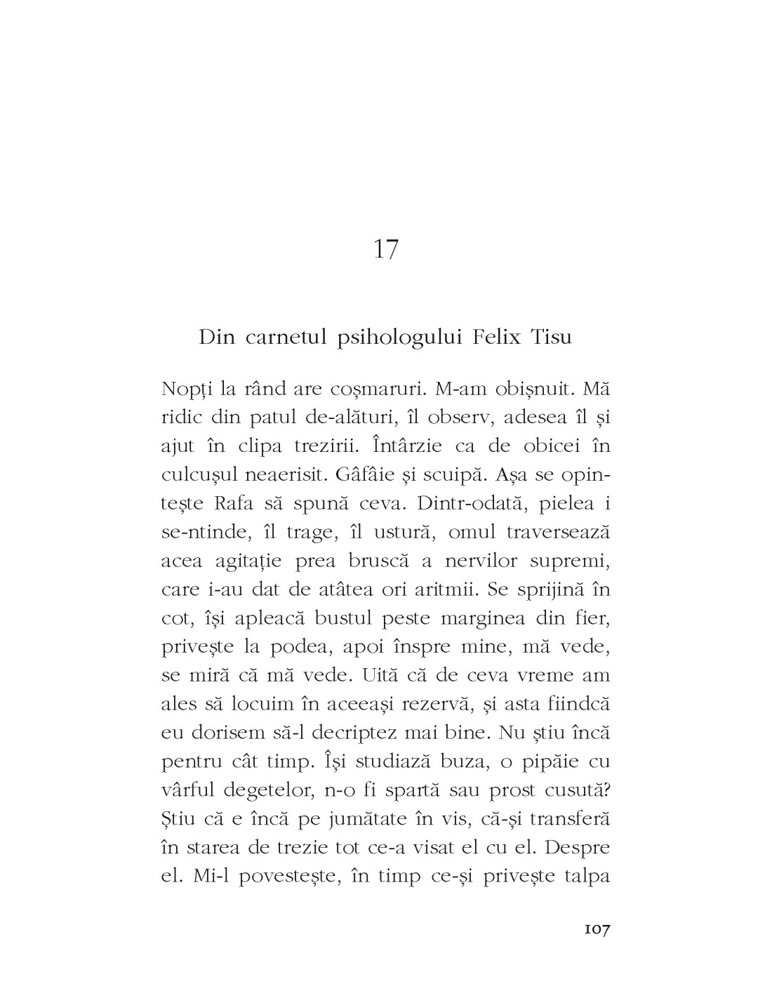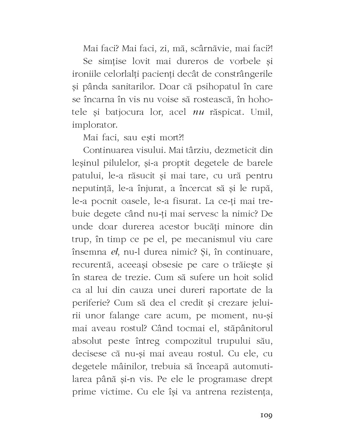 Un roman al lucidității mai degrabă autoflagelante decât eliberatoare. Un spațiu al interiorității, marcat de borne fragile.