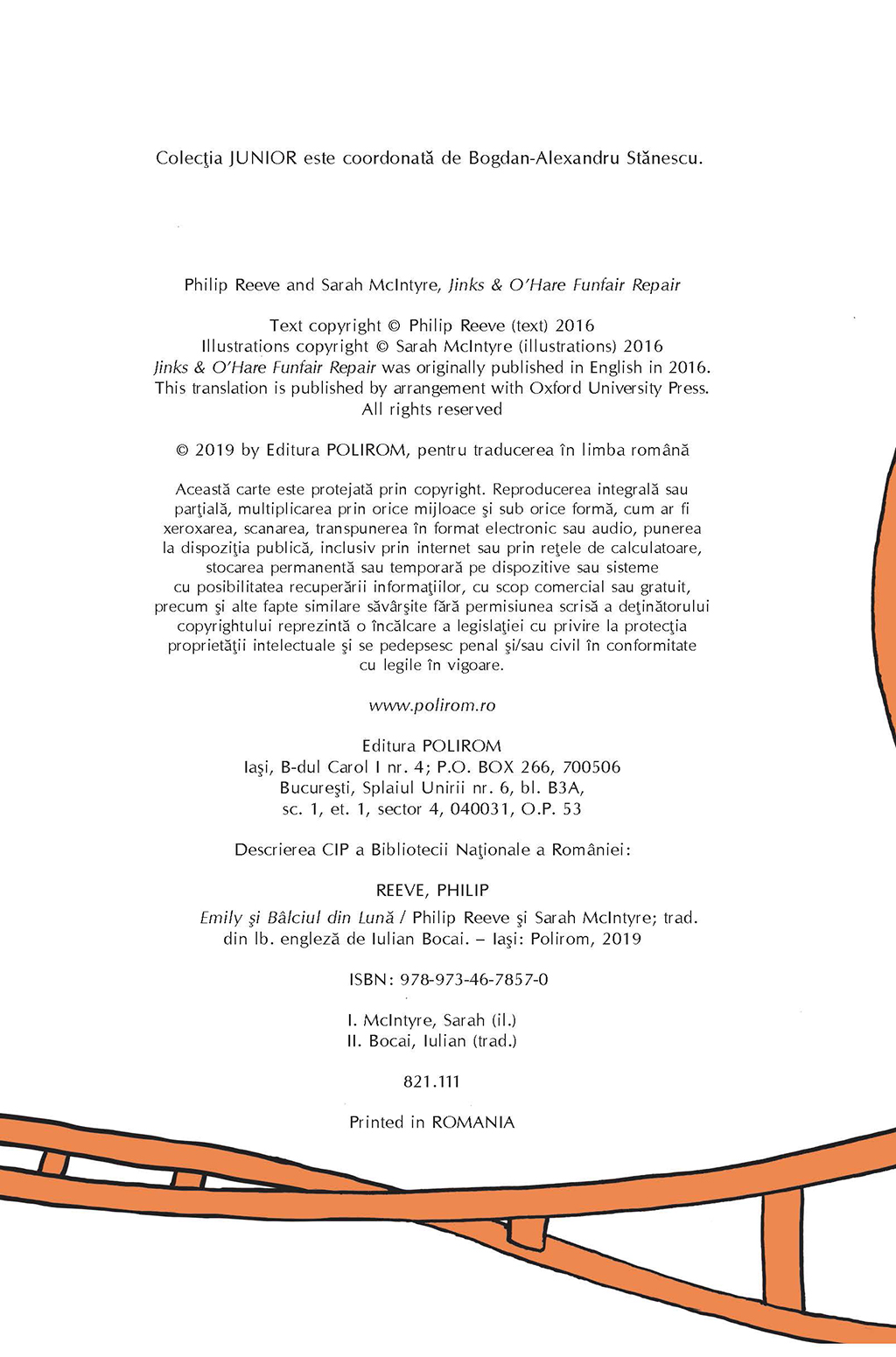 Emily și Bîlciul din Lună spune povestea unei fetițe descurcărețe care visează să devină mecanic de bîlci. Cînd distracția de pe Luna Bîlciului este amenințată de un monstru de vată de zahăr, o explozie de caramele, un tobogan cu gravitația inversată și alte anomalii care apar chiar în mijlocul unei inspecții importante, Emily face echipă cu eroii ei, doi mecanici experimentați și ciudați, ca să prevină dezastrul. Sarah McIntyre și Philip Reeve au creat o lume plină de personaje pitorești, peripeții și răsturnări de situație spectaculoase, care îi va captiva chiar și pe cei mai reticenți dintre tinerii cititori. Cei mai mici pot lua și ei parte la aventură urmărind ilustrațiile întotdeauna creative și haioase care completează povestea.