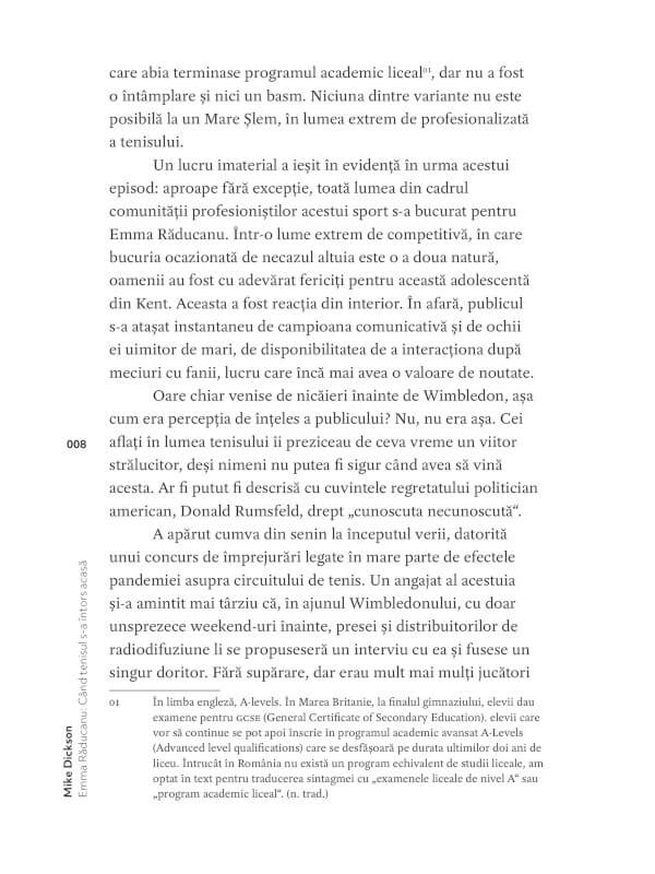 Plină de detalii și comentarii de specialitate, dar și cu multă atmosferă de la turneele din Anglia și din străinătate, cartea reușește să contureze portretul convingător al uneia dintre cele mai inteligente și talentate sportive britanice din ziua de azi.