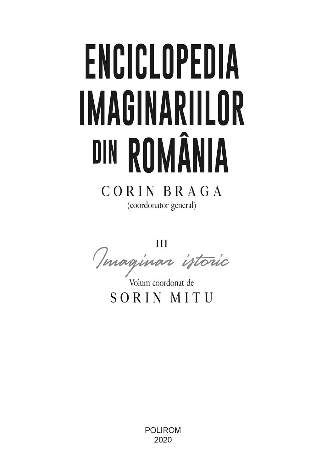 Al treilea volum al Enciclopediei imaginariilor se apleacă asupra imaginarului istoric al românilor. Mai mult decât celelalte reprezentări colective, imaginarul istoric ia naștere din întâlnirea imaginației cu acțiunea umană în plan politic, social sau cultural. Din acest motiv, el poate fi considerat un subiect central, iar investigarea sa, cartografierea, înțelegerea și explicarea mecanismelor care îl guvernează, în timp și în spațiu, reprezintă o sarcină obligatorie a cercetării științifice românești din domeniul umanist. Imaginarul istoric oferă un bilanț și o sinteză inovatoare ale principalelor reprezentări ale istoriei noastre, de la mitul originilor și tema identității naționale până la mitologiile istoriografice, temele istorice recurente, imaginarul rasial și etnic sau reprezentările istorice confesionale concurente.
