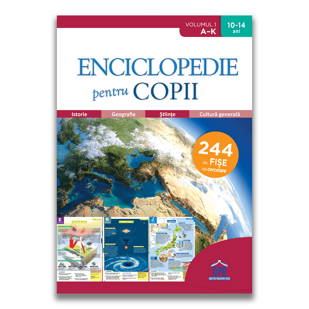 Enciclopedie pentru copii, volumul I de la A la K conține 244 de fișe de cercetare și se adresează copiilor cu vârste cuprinse între 10 și 14 ani.
